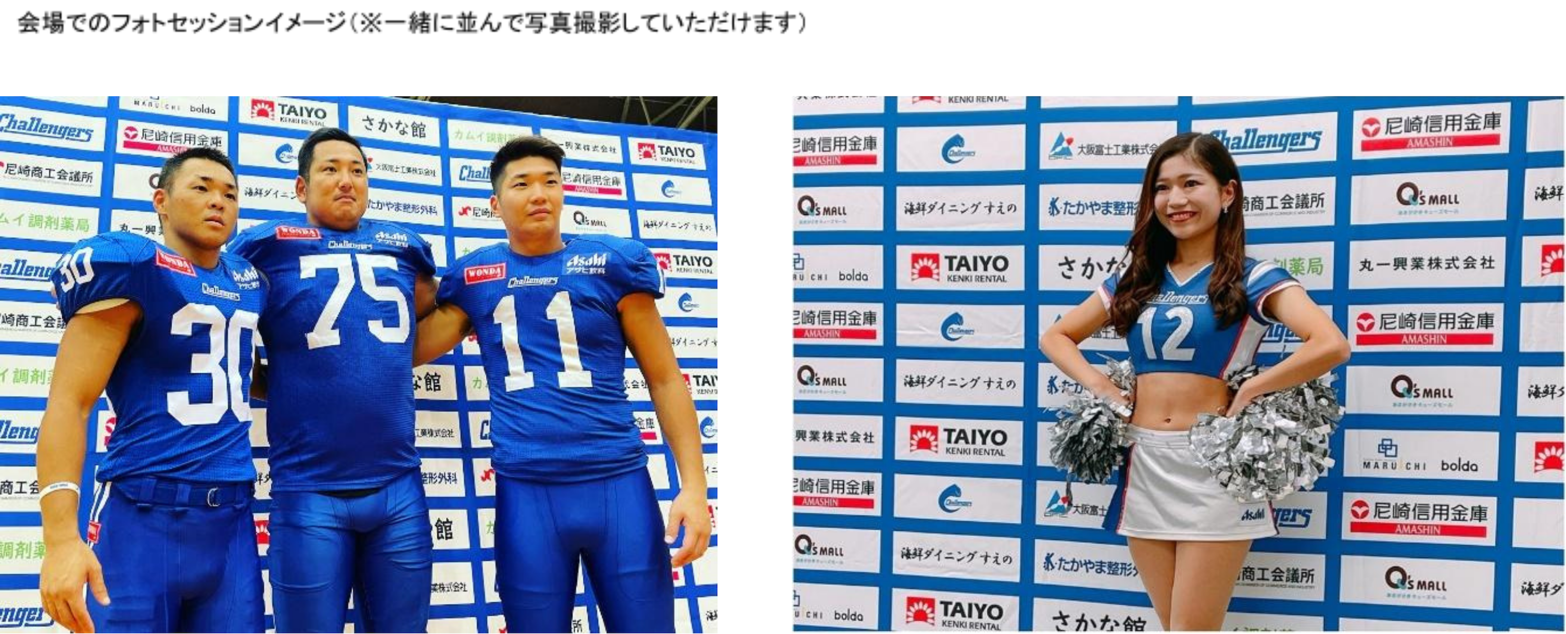 推しの選手またはチア一人と「限定20組」に、尼崎ボウル当日の試合前にフォトセッションを行っていただけます。チェキで撮影した写真にその場でサインをしてお渡しします。