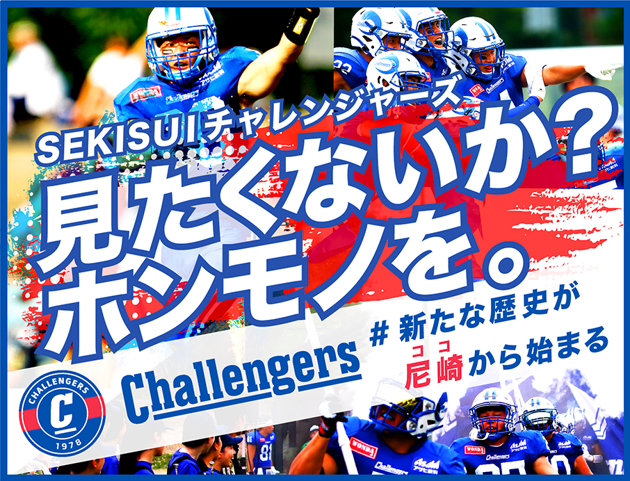 SEKISUIチャレンジャーズは、日本社会人アメリカンフットボール協会に加盟するアメリカンフットボールチームです。2022年からアメリカンフットボールの国内最高峰リーグのX1 SUPERに昇格し、強豪チーム相手に「チャレンジャーズ旋風」を巻き起こすべく奮闘しています。