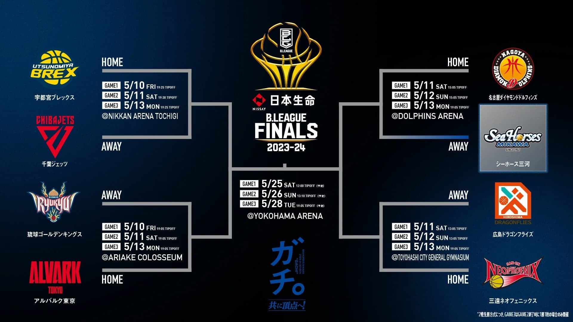 QFは、敵地・ドルフィンズアリーナでの名古屋ダイヤモンドドルフィンズとの“愛知ダービー”に決まった。