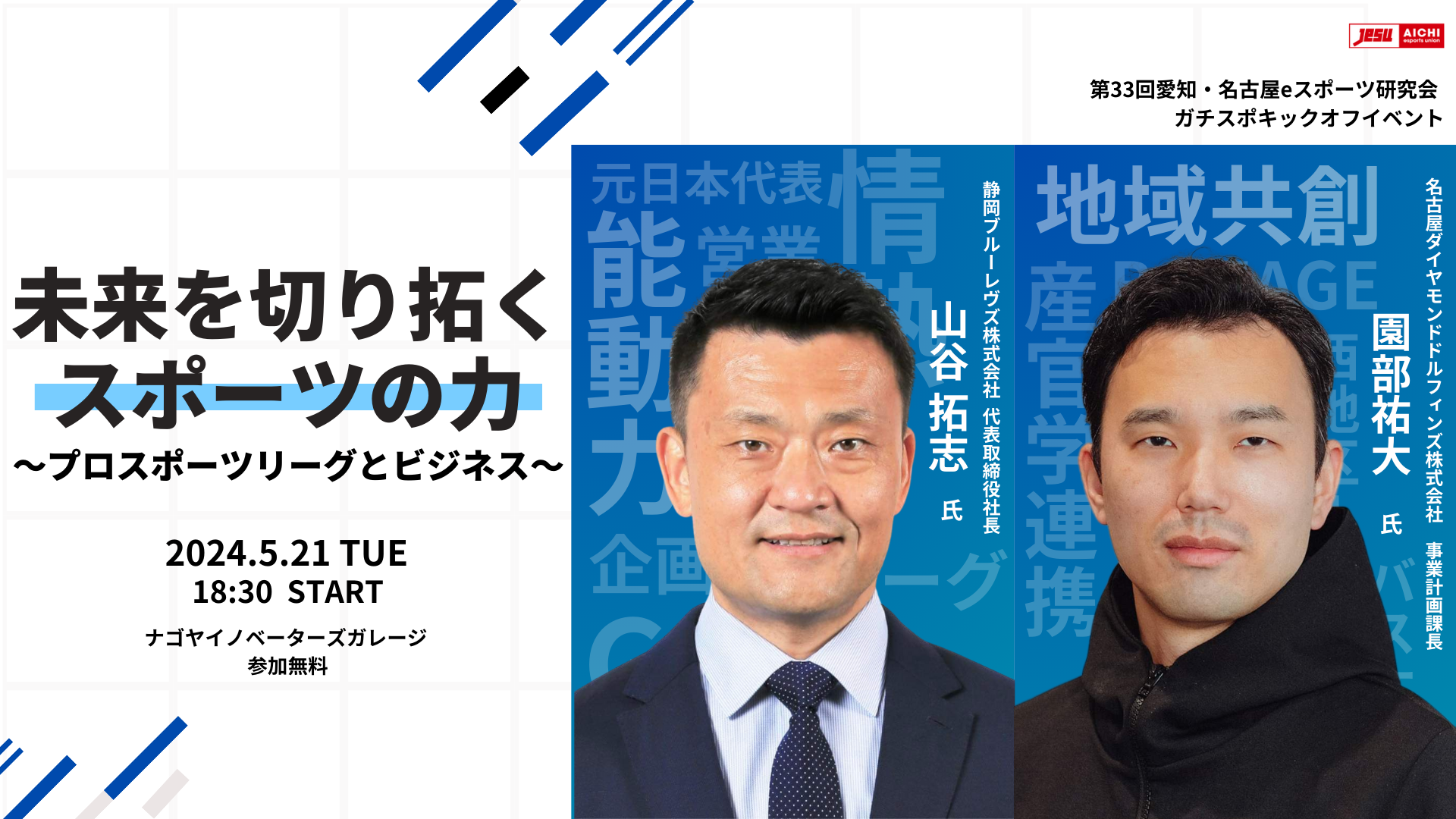 本イベントを第33回愛知・名古屋eスポーツ研究会として同時開催し、愛知・名古屋を中心とする地域の企業と共に、この愛知・名古屋を盛り上げてまいります。