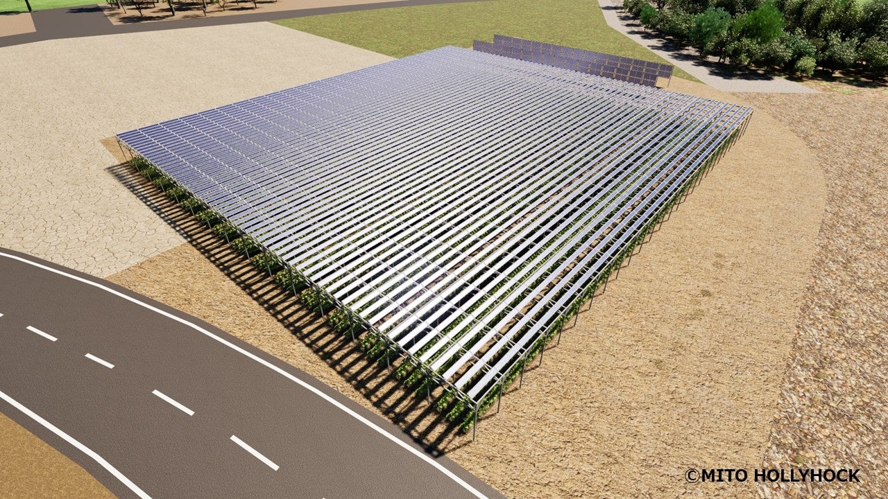 Jリーグクラブである水戸ホーリーホックは、Jリーグ気候アクションに賛同し、化石燃料をクリーンエネルギーに転換して脱炭素化社会を構築していく取り組みであるGX(グリーントランスフォーメーション)事業に、農事業「GRASS ROOTS FARM」で培ったノウハウを活用することで、「ソーラーシェアリング」に挑戦し、クラブ事業の一つとして取り組んで参ります。