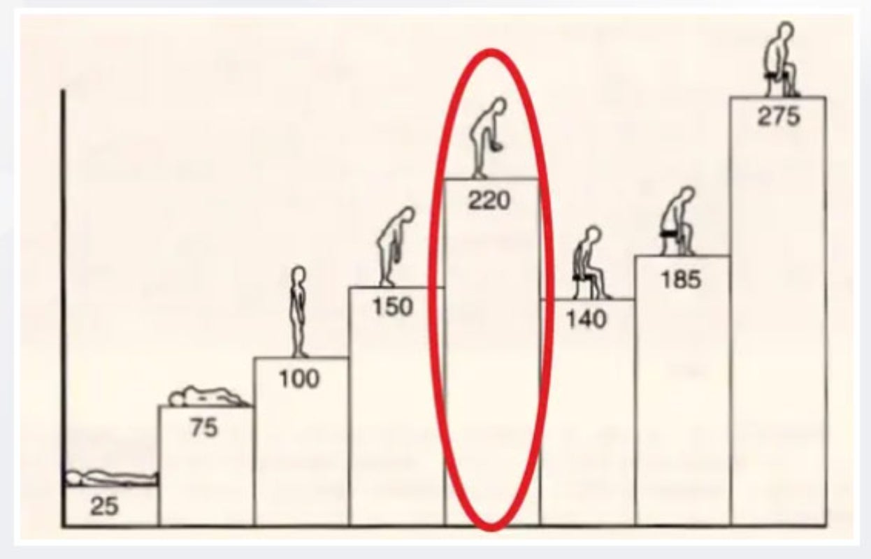 姿勢による椎間板内圧の変化を調べた研究(NACHEMSON A :THE LUMBAR SPAIN.AN ORTHOPAEDIC CHALLENGE.SPAIN 1:59-71,1976)によると、立って前傾になって物を持つ姿勢が顕著に椎間板内圧の負担がかかる、つまり腰への負担が増大する姿勢であることがわかっています。