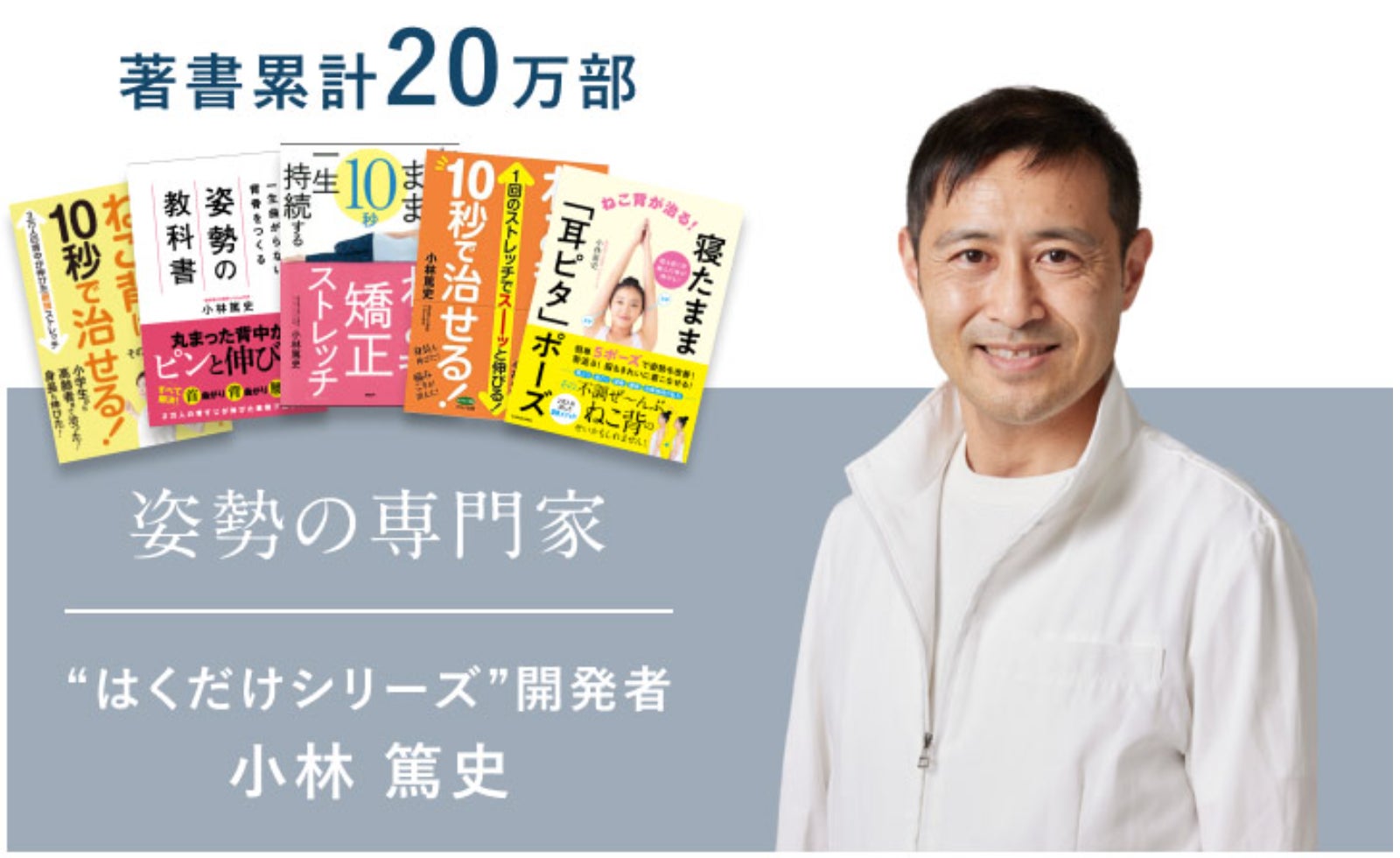 「すぐできる 10秒ねこ背ストレッチ」をはじめ累計20万部の著者であり、テレビや雑誌の取材も多数。