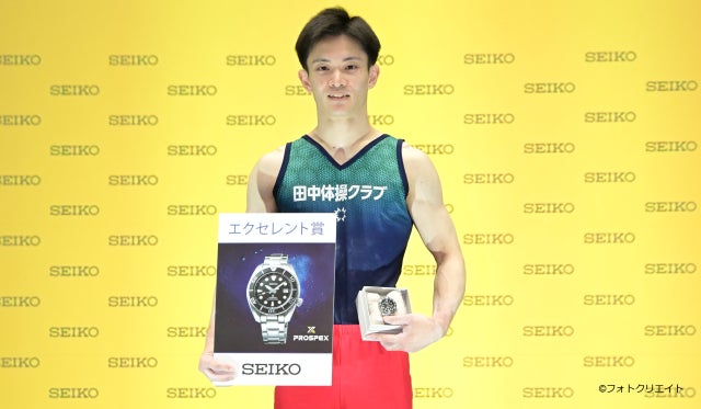 セイコーグループ株式会社(代表取締役会長 兼 グループCEO 兼 グループCCO 服部 真二、本社:東京都中央区、以下「セイコー」)は、5月16日(木)~19日(日)に、高崎アリーナにて開催された公益財団法人日本体操協会(会長 藤田直志 住所:東京都新宿区、以下「(公財)日本体操協会」)主催「第63回NHK杯体操」において、「セイコー エクセレント賞」として田中 佑典選手(田中体操クラブ所属)には<セイコー プロスペックス>のプロスペックスダイバースキューバウオッチを、杉原 愛子選手(TRyAS所属)には<セイコー ルキア>のLUKIA Growモデルをそれぞれ贈呈いたしました。