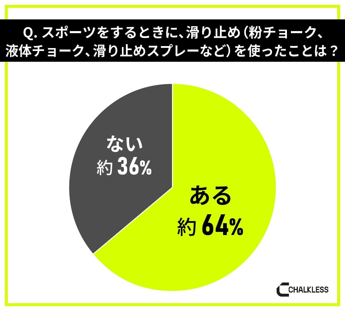 続いてスポーツをプレイしているときに粉チョークや液体チョーク、滑り止めスプレーなどを使用したことがあるかを質問しました。