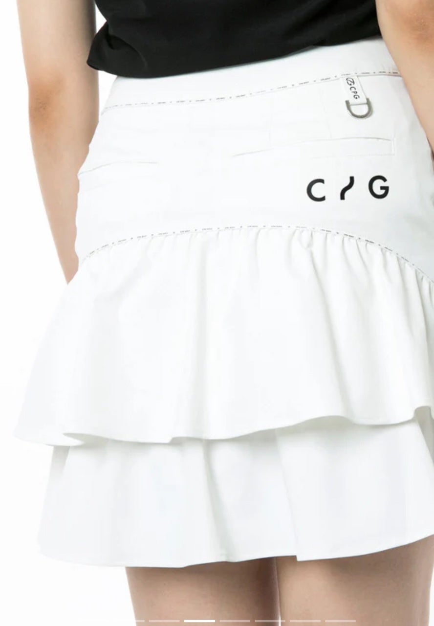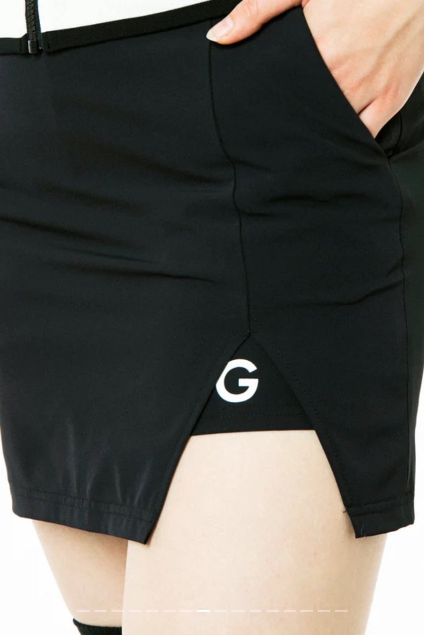 撥水、透湿性、接触冷感、防シワ、UVカット、防透け、2WAYストレッチ、マシンウオッシュ可の多機能素材。バックスタイルのフレア感が甘すぎない大人可愛いを叶える人気のシルエット。多機能な快適素材でNEWロゴもシンプルに際立つフェミニンでスポーティーなスコート。