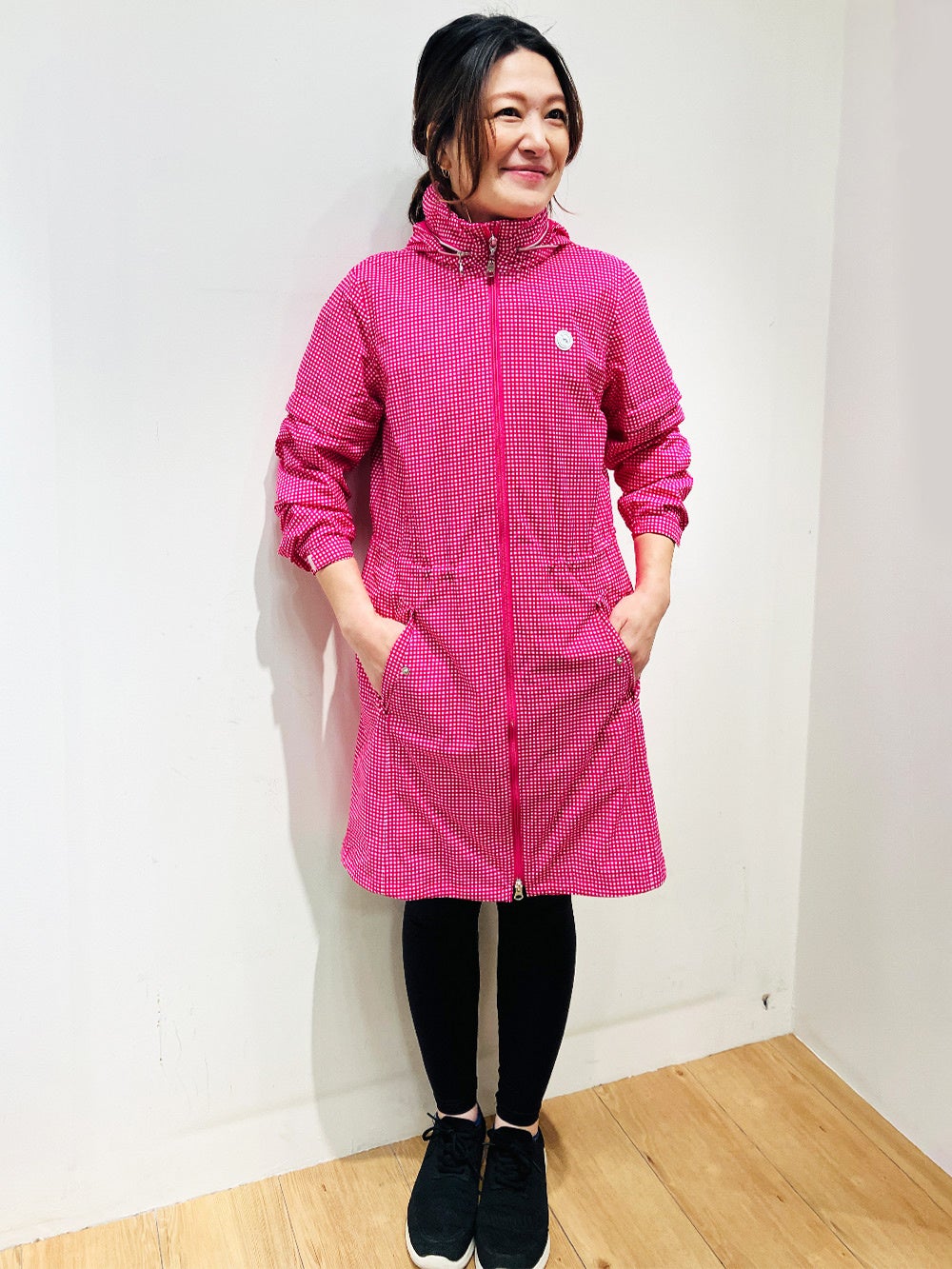 大きめのサイズ感でポケットは中身が落ちにくいフラップ付き。裾のゴムで丈の調整が可能。裏地はメッシュ素材を使用しており梅雨の時期もムレにくく軽量で羽織りやすいアイテムです。ゴルフ以外にもアウトドアや旅行など幅広く使えます!