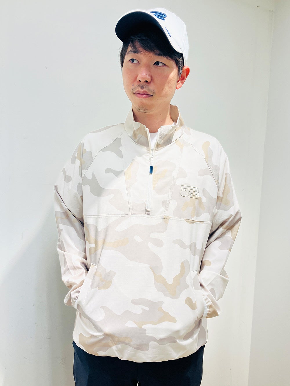 撥水・UVカット・ストレッチ機能を併せ持つリップストップ生地を使用したデザートカモフラ柄ブルゾン。トレンド感のあるドロップショルダーのゆったりシルエット。パッカブル仕様で持ち運びに便利。急な雨にも重宝する優秀アイテムです!