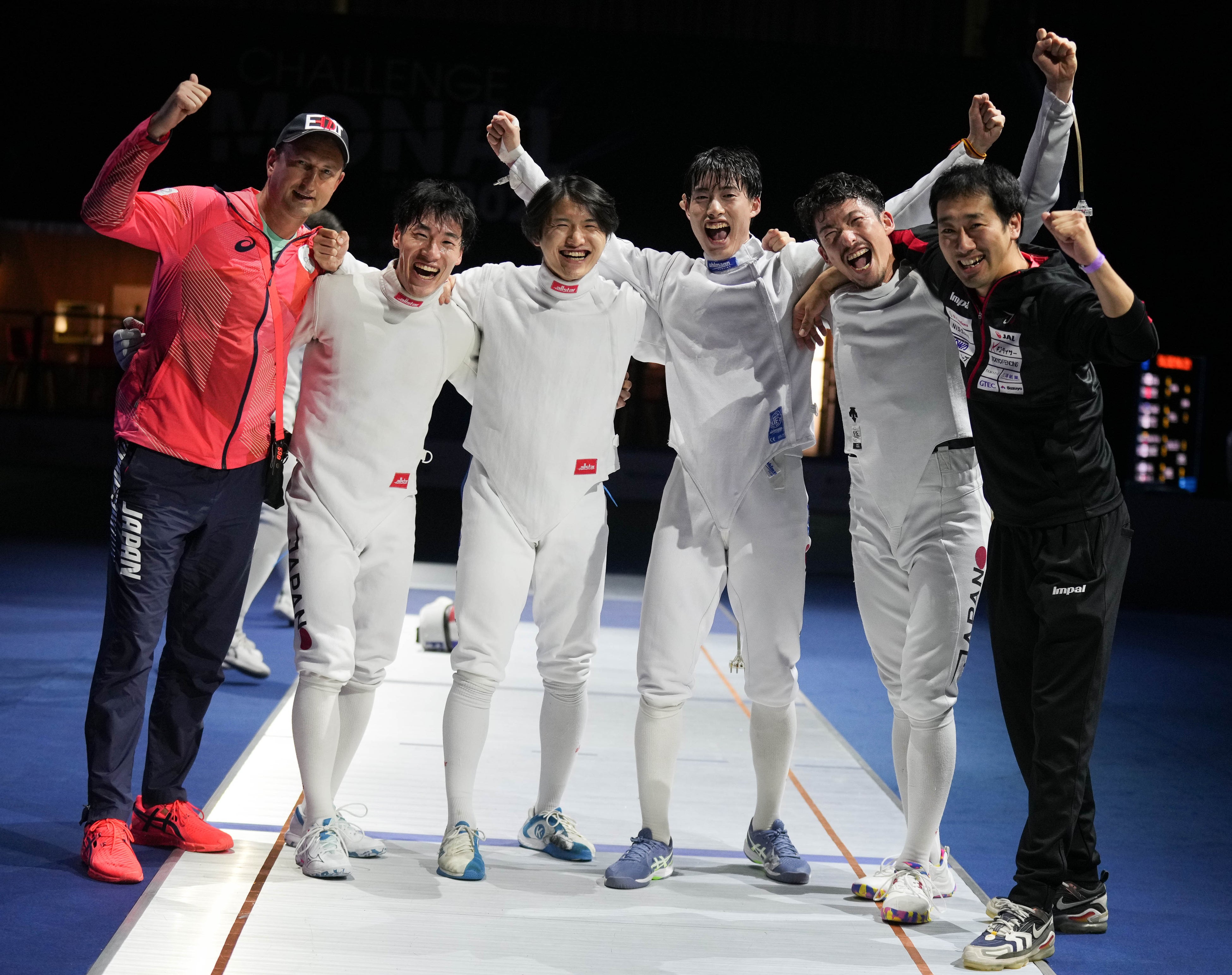 見延和靖:今大会はオリンピック前、最後のワールドカップで、最大のライバル国であるフランスチームに勝っての優勝はとても大きな自信となりました。アウェイの中でも押し潰されることなく接戦をものにできたのは、出場した4人だけの力ではなく、紛れもなく観客席から声援を届けてくれた仲間と応援団の力です。応援の数では負けていましたが、エネルギー量では負けていなかったと思います。この勢いで、オリンピック本番も優勝を目指していきたいと思います!