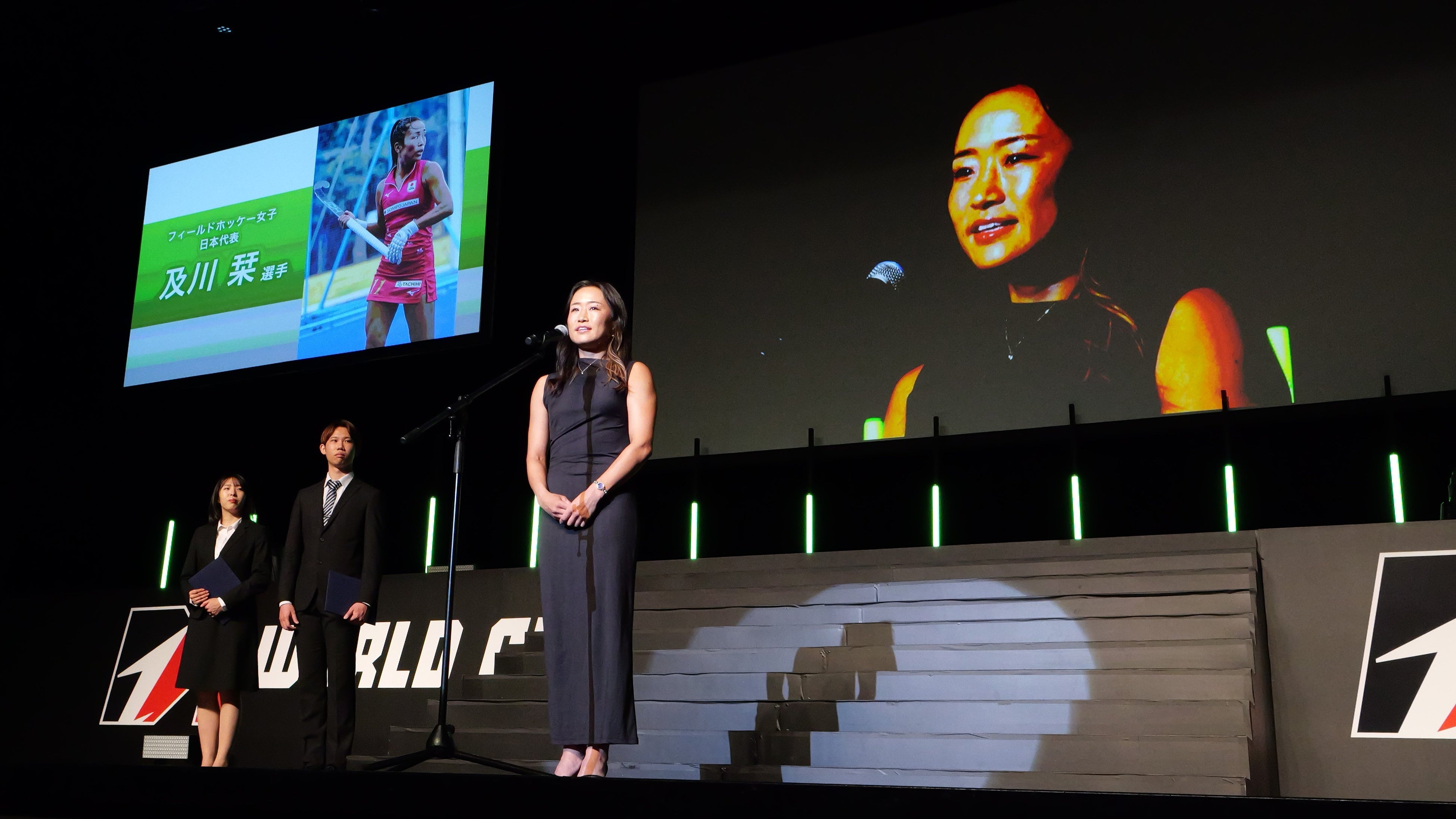 昨年からプログラムに追加された入社式では、250名を超える過去最多の2024年度新入社員を迎えました。更にスペシャルゲストとして、現在Dr.stretchグランドトレーナーが5年間帯同しているホッケー女子日本代表の及川栞選手(東京ヴェルディホッケーチーム/所属:タカラベルモント(株))が激励に駆けつけてくれました。日の丸を背負いながら挫折も味わってきた自身の経験をもとに、「これから沢山の逆境にあうと思うがどんな時も自分の夢を忘れずに、将来どの様になりたいのか、その夢がしっかりしていればどんな道を進んでも自分がなりたい姿になれると思います。私の夢を一緒に追って下さい、そして皆さんの夢を叶えて下さい。」と新入社員に向けて挨拶し、7月26日にパリで開催されるスポーツの国際競技大会への出場を控えながら、ストレッチトレーナーという職業の価値や夢を持つことの大切さを伝えていただきました。
