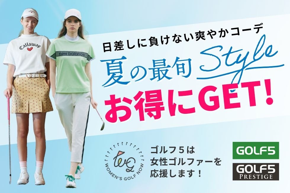 ゴルフ5では本日より、Women’s Golf Nowにちなんだ女性応援特集ページを公開。ブランド別4つのスタイルで楽しむサマーコーデや、おすすめのゴルフシューズやバッグ、夏ゴルフのマストバイアイテムなど、女性の皆様必見の情報が満載です。