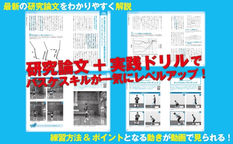 フローターショットの打ち方、リバウンドの予測、パススピードの上昇、ピック&ロールの活用など、テーマ別に「研究論文の解説」+「実践ドリル」の構成で詳解。
