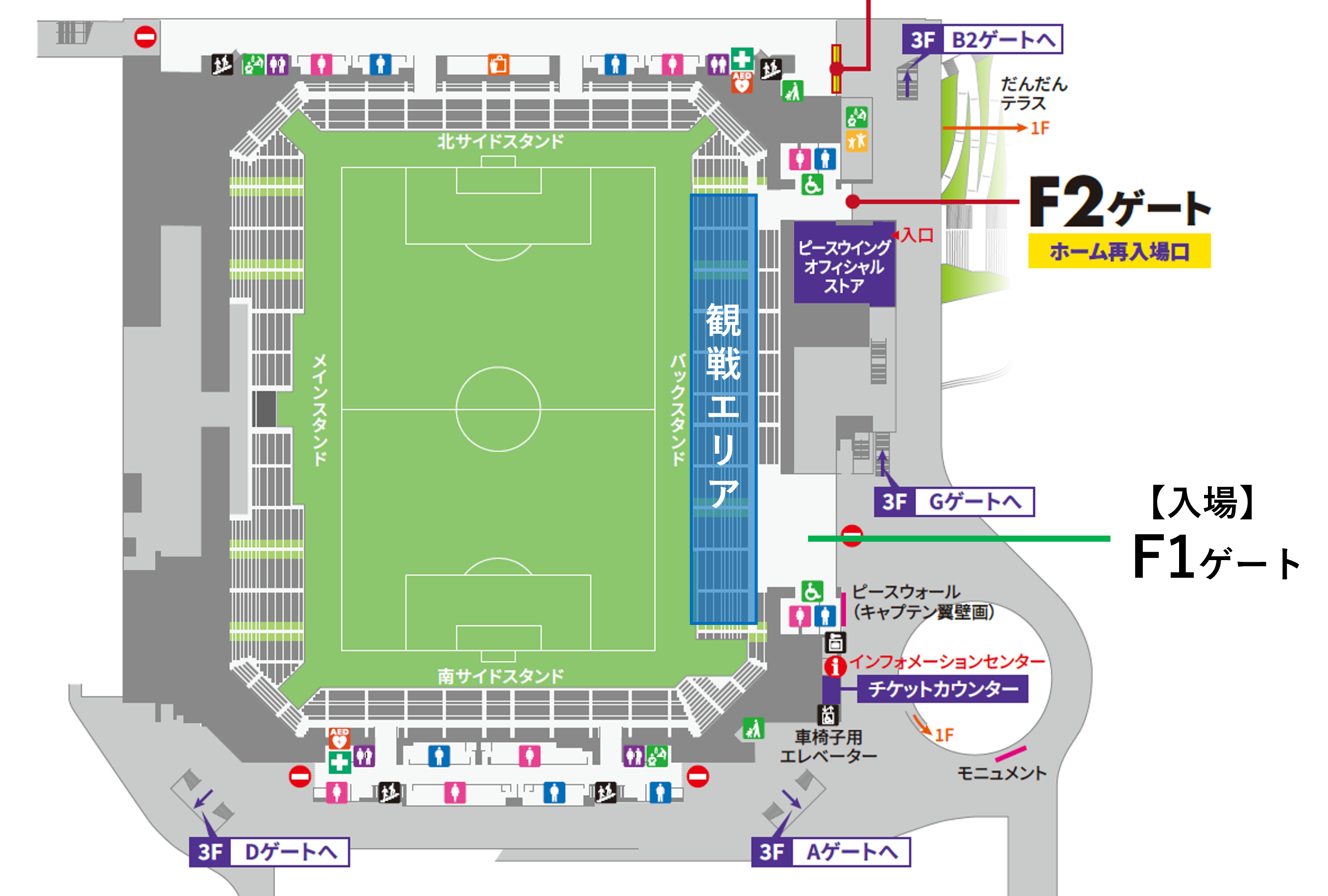 パブリックビューイング終了後、F1、F2ゲートより退場いただけます。