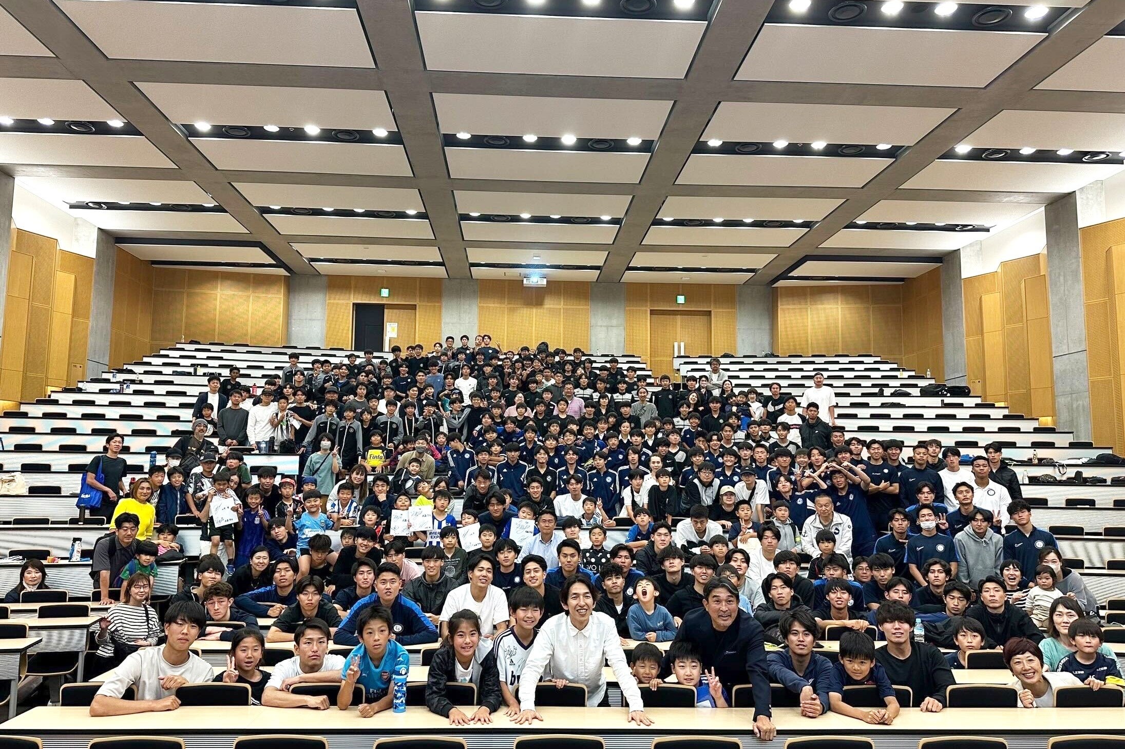 「失敗を恐れず挑戦する心や、自分の夢に向かって生きることの重要性」をテーマに、夢を持つことの大切さについて講演いただき、桐蔭横浜大学のサッカー部がプロデュースするサッカースクール「TUY」の生徒や保護者、地域のサッカー少年少女、サッカー部に所属する学生たち約400名が聴講しました。