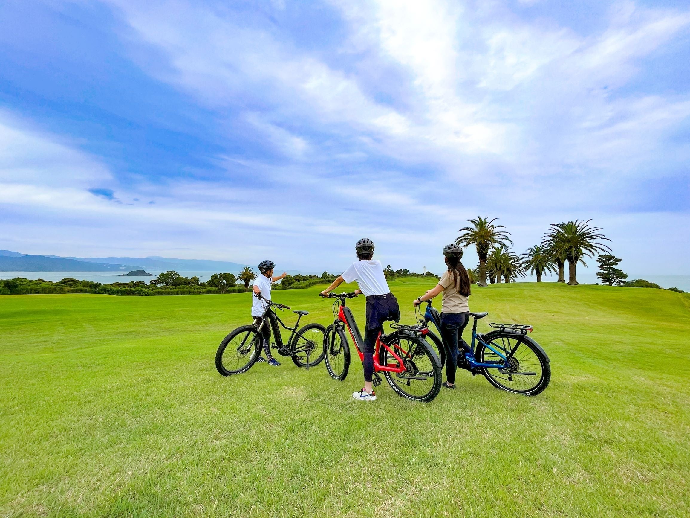 コース内を移動する際、世界的な自転車メーカーであるMERIDA製電動アシストマウンテンバイクで移動するアクテビティ要素も取り入れ、絶景の海岸線の景色の中を爽快に駆け抜けることができます。