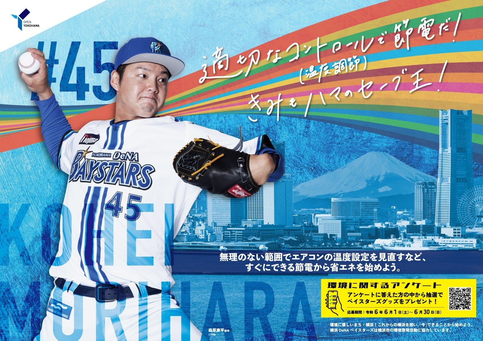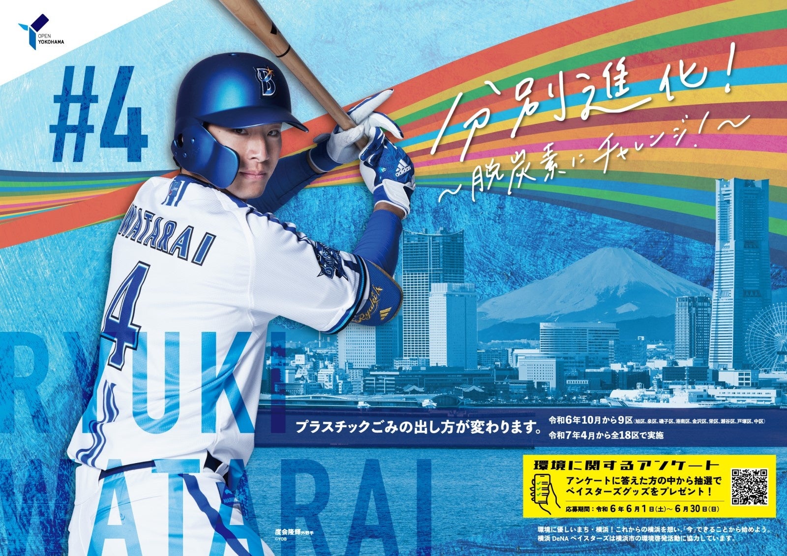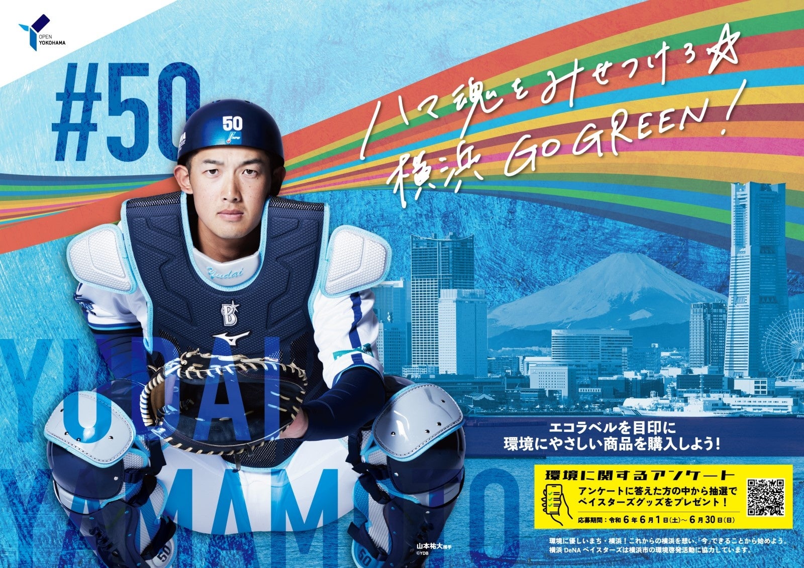 今年は市内約1,050か所にポスターを掲出し、市民へ環境行動を呼びかけます。また、今年は新たに6月3日(月)から6月9日(日)の期間、横浜市営地下鉄ブルーライン関内駅に大型ポスターを掲出します。昨年に引き続き、抽選で6名様にベイスターズグッズが当たる環境に関するアンケートも実施します!