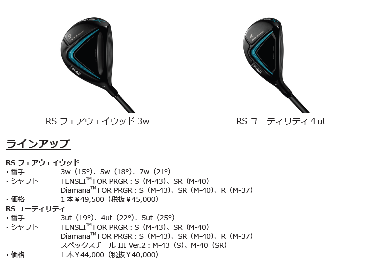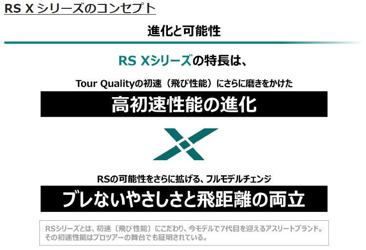 プロギアは、同時に「RS X」シリーズから従来品を上回る初速性能と強弾道にやさしさをプラスしたドライバー3モデルを発売します。