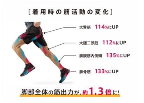 作用する筋肉が正しく働くことにより、下肢全体の筋出力を最大約130%に増大。