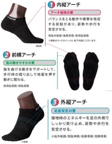 ② はくだけで、3つの足のアーチを整え、足元からの動作をサポート