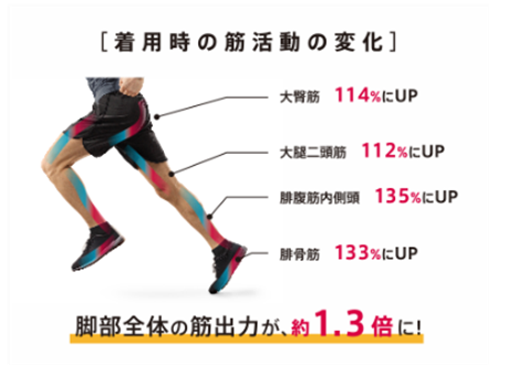 作用する筋肉が正しく働くことにより、下肢全体の筋出力を最大約130%に増大。