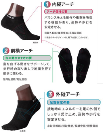 ② はくだけで、3つの足のアーチを整え、足元からの動作をサポート