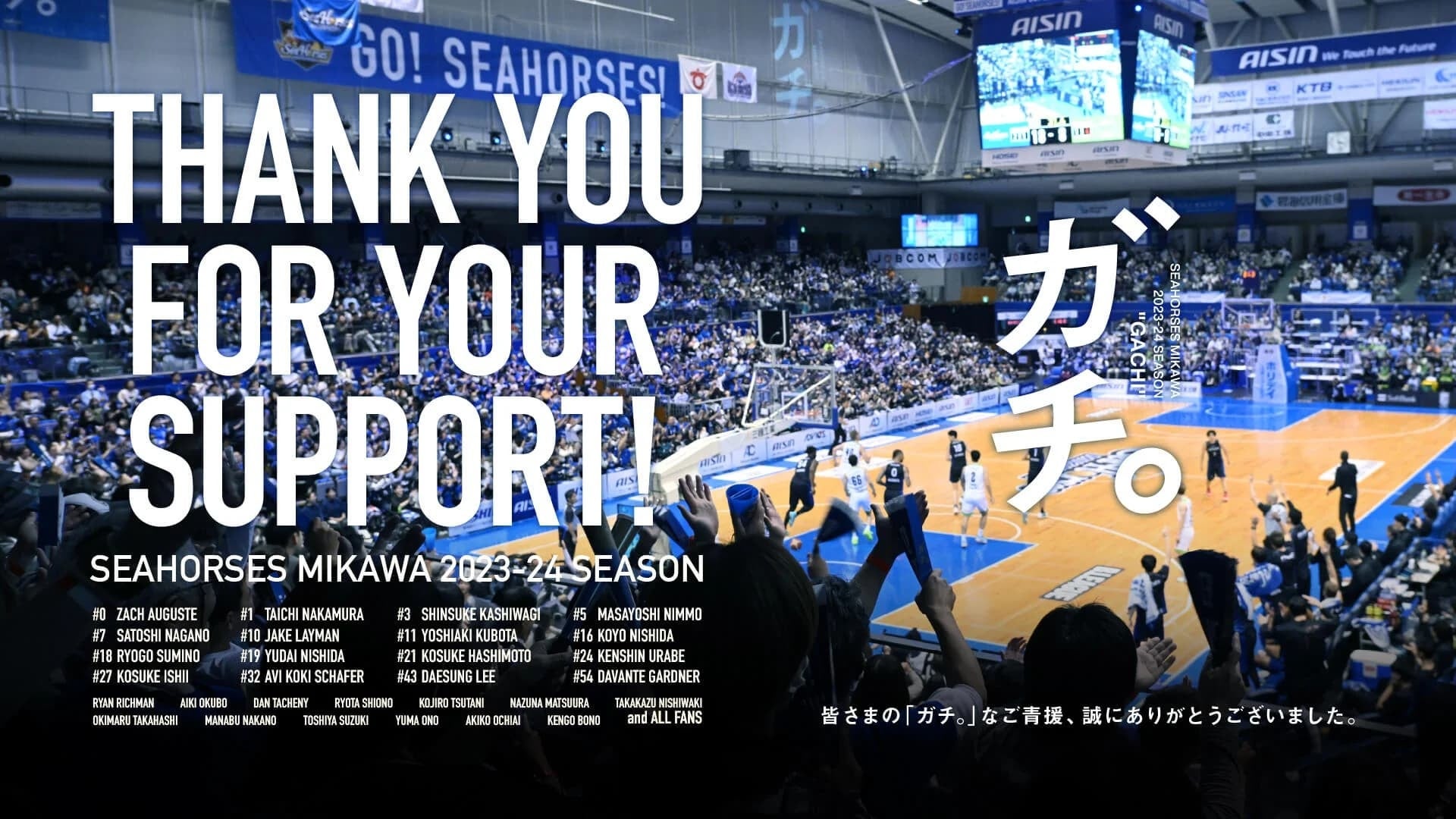 シーホース三河は、本日開催された「ファンフェス2023-24」をもちまして、今シーズンのチーム活動を終了いたしました。シーズンを通して多くのご支援・ご青援を賜りました皆さまに心より感謝申し上げます。