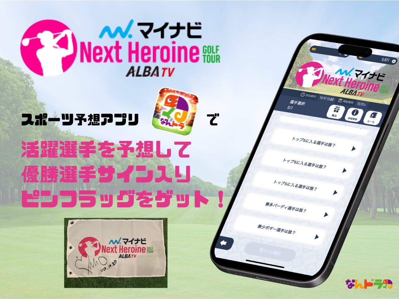 出場予定の全48選手の中からトップ5に入る選手を予想し、さらにその中から優勝する選手を選んでいただきます。予想成績1位となった方には、大会優勝選手のサイン入りピンフラッグが、2位には「なんドラ」オリジナルトートバッグがプレゼントされます。
