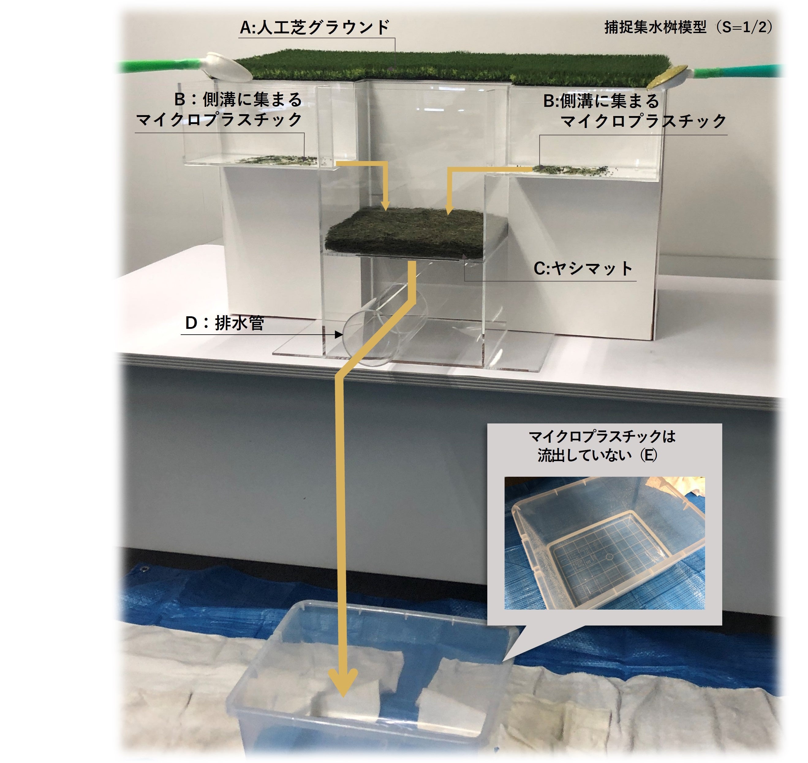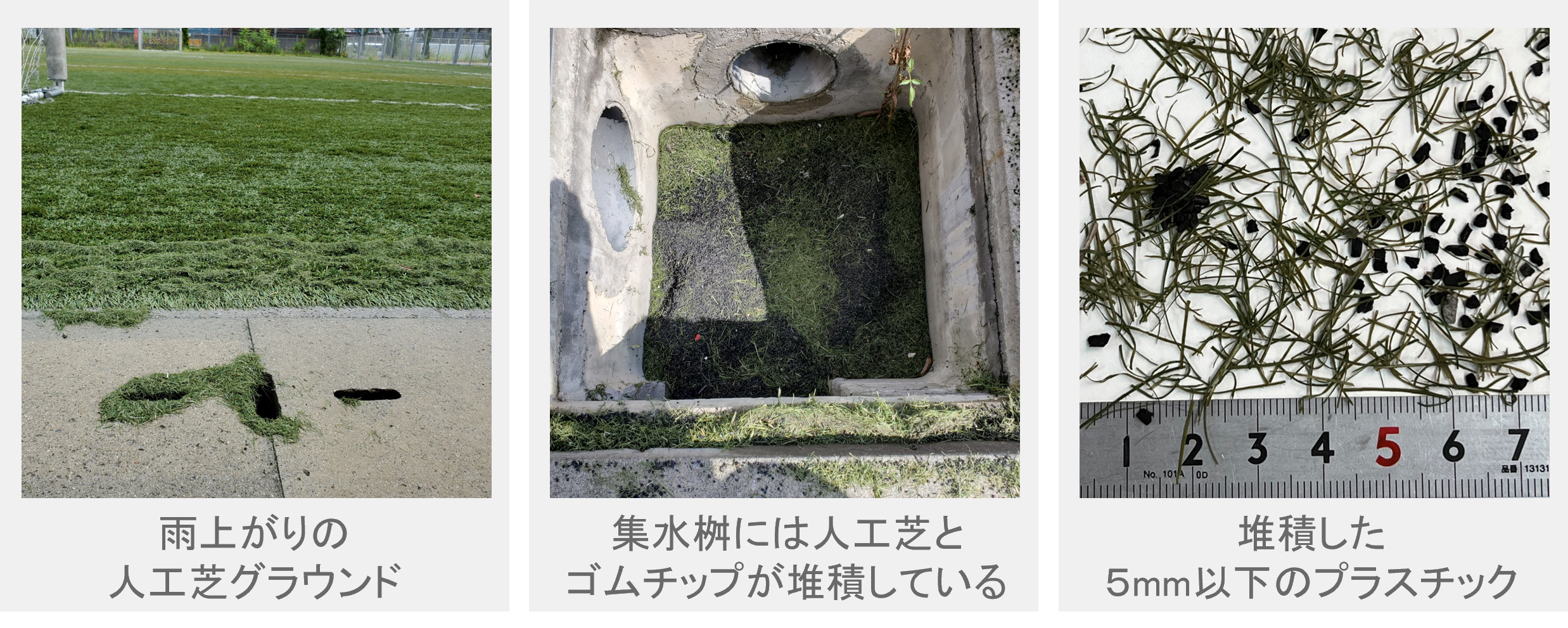 ※1:直径5mm以下のプラスチックを指す ※2:人工芝の葉の部分がちぎれための ※3:水を集める設備のこと
