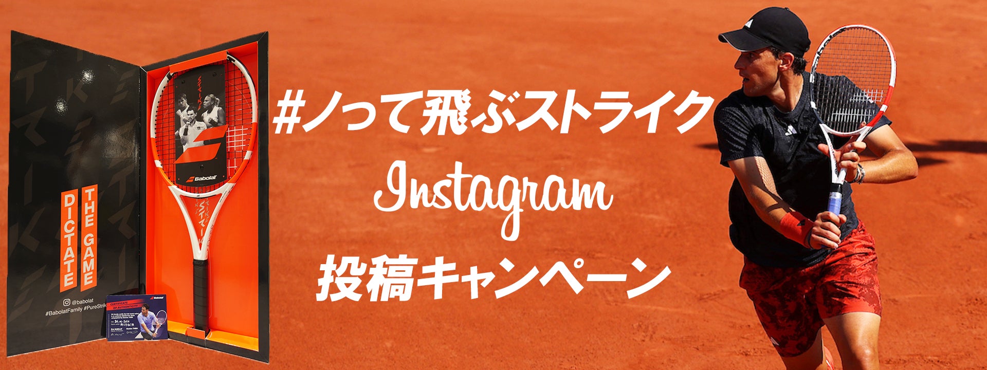 ②「#ノって飛ぶストライク」「@babolatjapan」を付けて、PURE STRIKEシリーズの写真と使用感を投稿