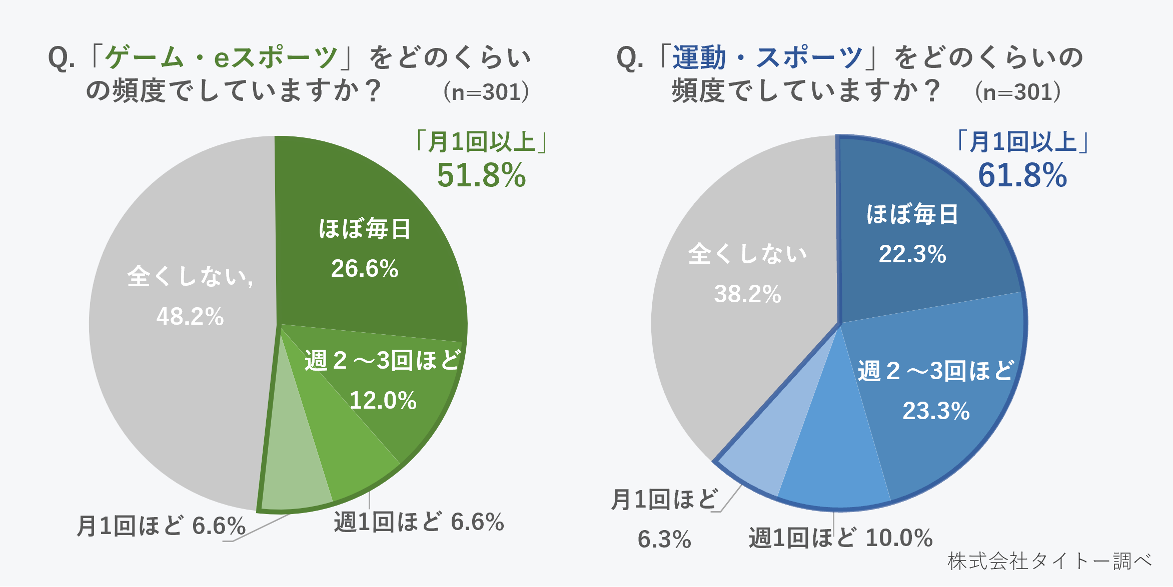 「月1回以上」するという割合では「運動・スポーツ」が「ゲーム・eスポーツ」を上回る。