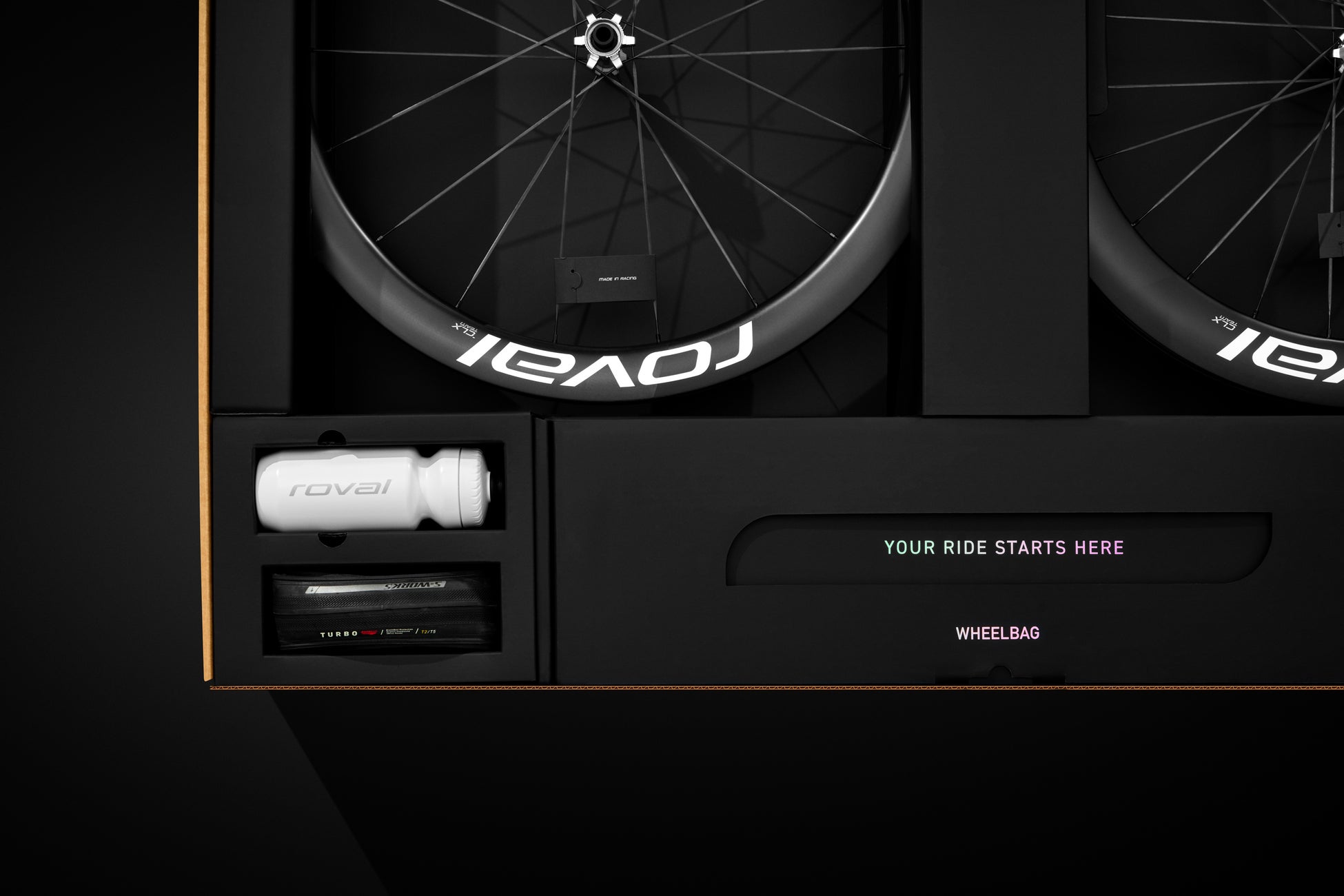 そんなシルバーアクセント以外にも、プレミアムなエクスペリエンスをもたらす工夫が凝らされています。これはただの目立つ箱に入れられた精巧なホイールセットではないのです。お買い上げ頂いたライダーにSpecializedチームの一員になった気分を味わっていただき、ワールドツアーに参戦するアスリートと同じエクスペリエンスを提供できるよう、新しいS-Works Turbo RapidAir 2Bliss Readyタイヤ、Rovalロゴ入りPuristボトル2本、ホイールバッグ、スペアパーツなど、豪華なアイテムが付属します。