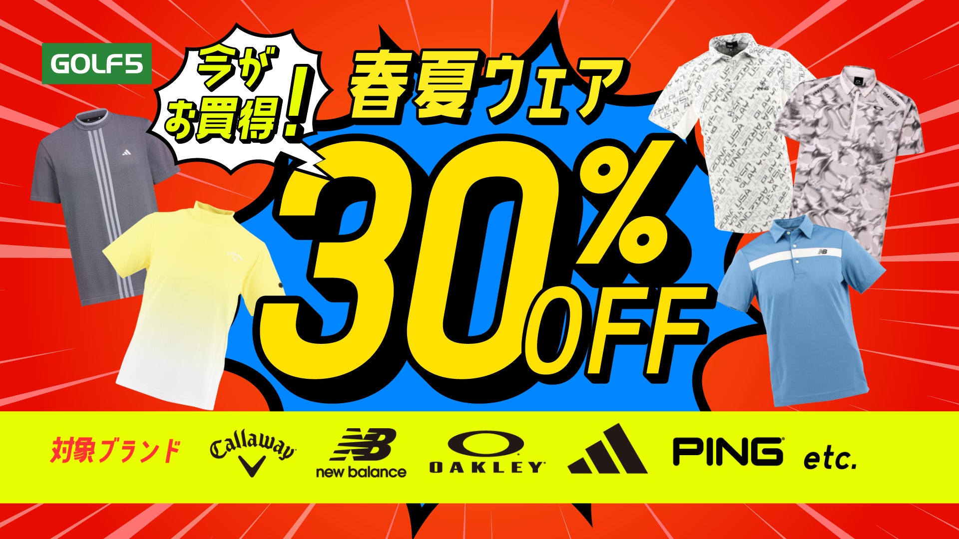 ■夏物ゴルフウェアは30%OFF!人気ゴルフボールのポイント還元も