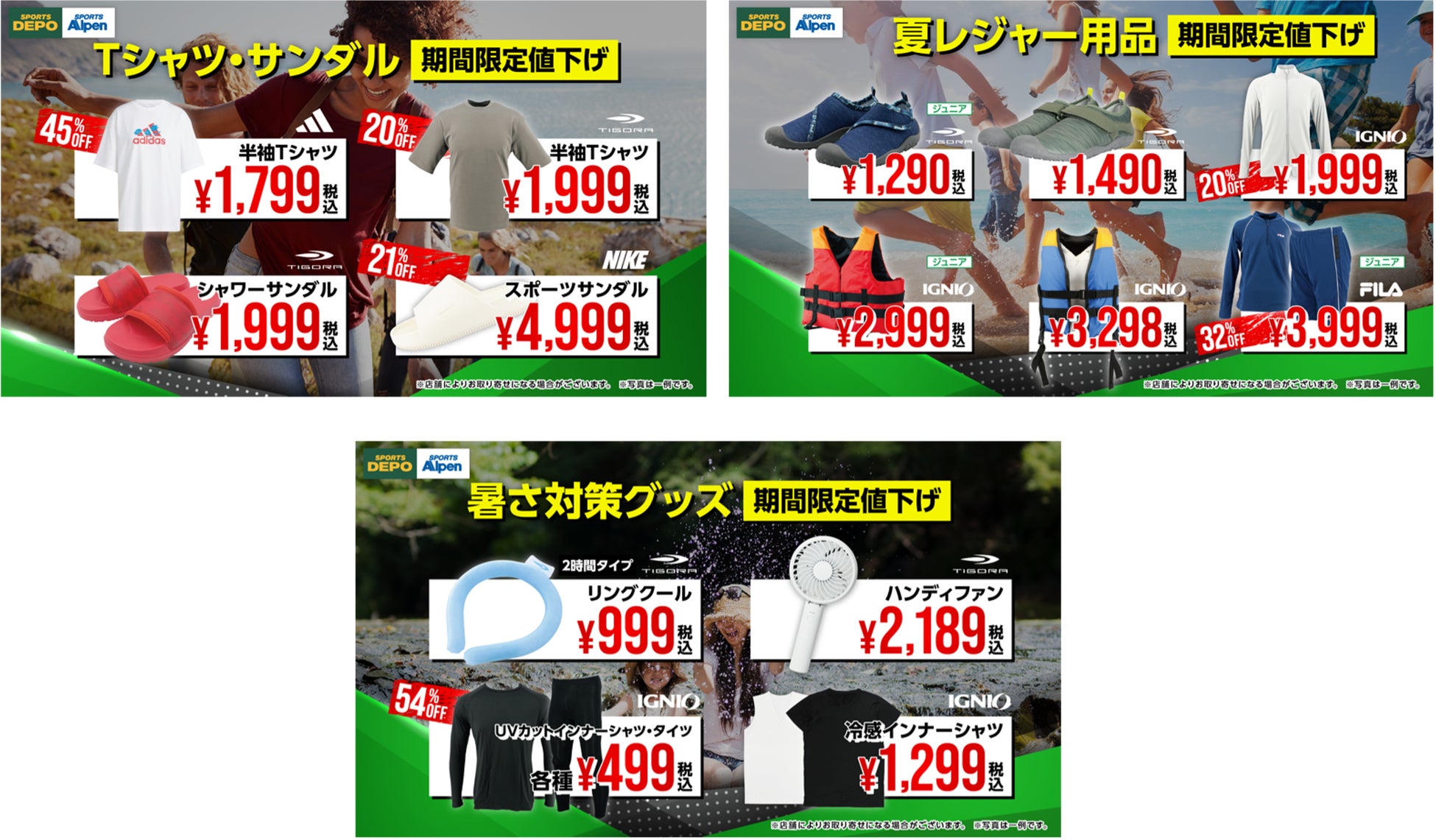 ■Tシャツやサンダル、夏のレジャーアイテムが期間限定値下げでお買得!