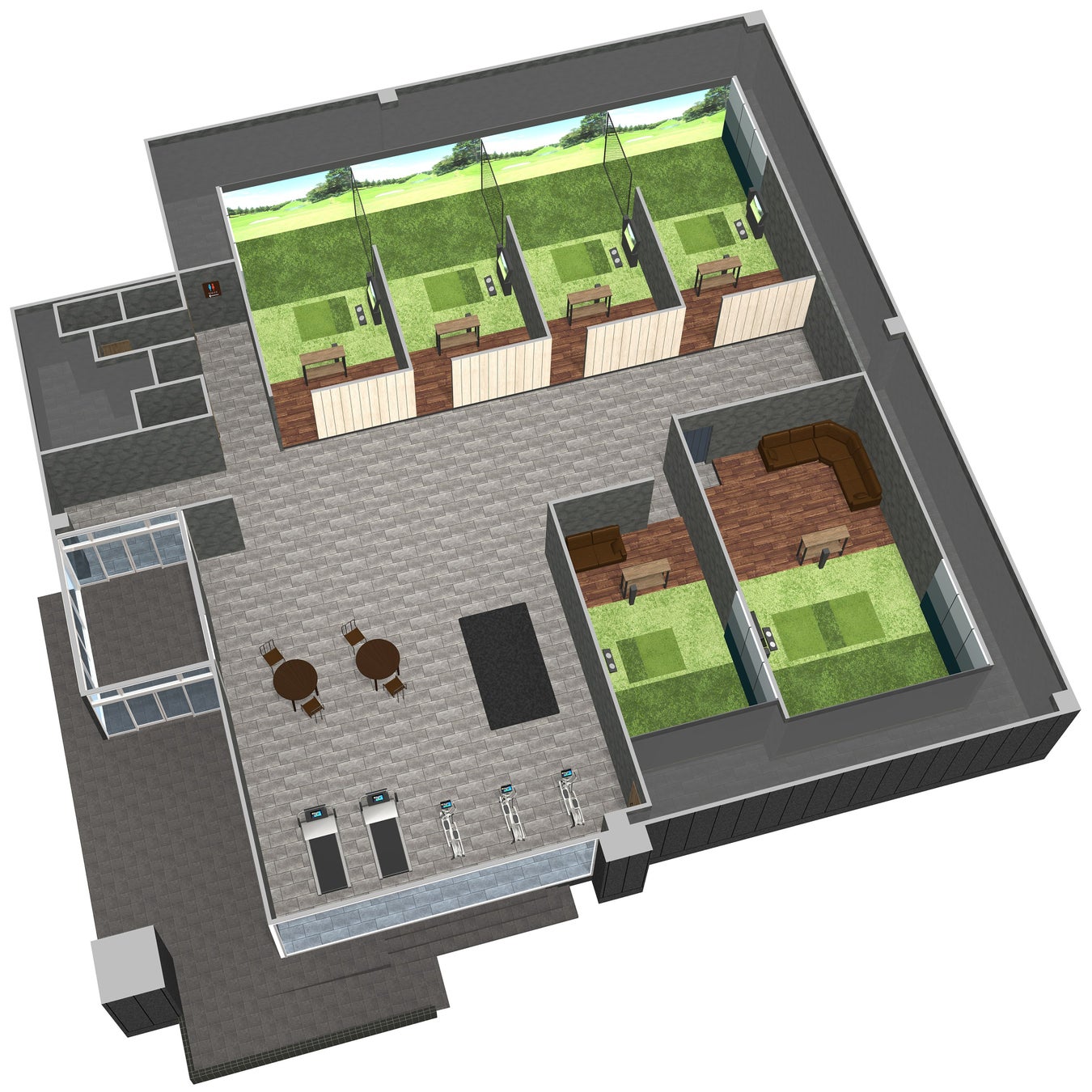 VIPルームはゆったりとした完全個室。集中練習や、友人や仲間といっしょに会話を楽しみながら練習に最適です。スイングプレートを完備しているのでバーチャルラウンドが盛り上がること間違い無し。左打席も完備しています。