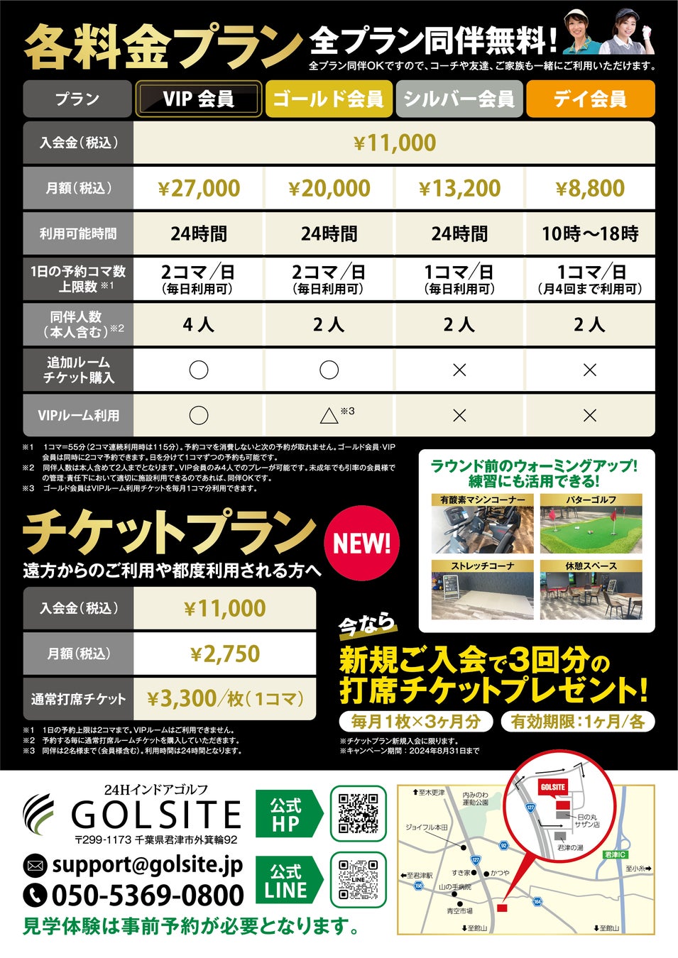 参加費:無料(GOLSITE会員様のみ)※同伴でのご利用は可能です。