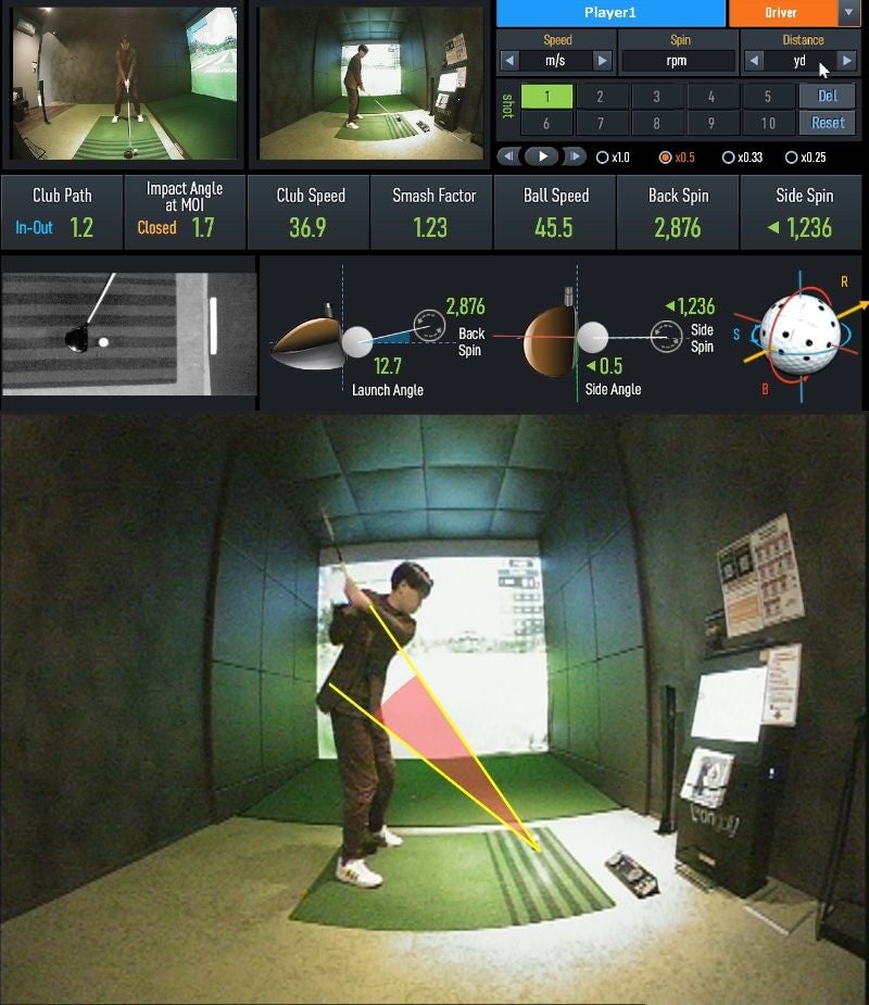 高性能ハイスピードカメラでボールスピン量を正確に計測し、弾道測定は勿論、クラブフェイス動画、スイング分析、10種類の練習機能を搭載。更に全世界の200近くのコースでプレーできます。