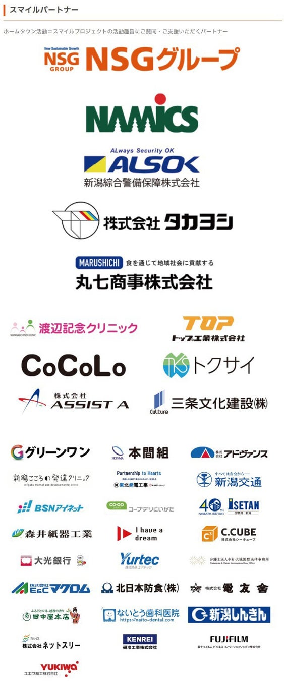 アルビレックス新潟では、たくさんの笑顔に貢献するアクションとして、ホームタウン活動を「スマイルプロジェクト」と定義し、笑顔溢れる街づくりに取り組んでまいります。
