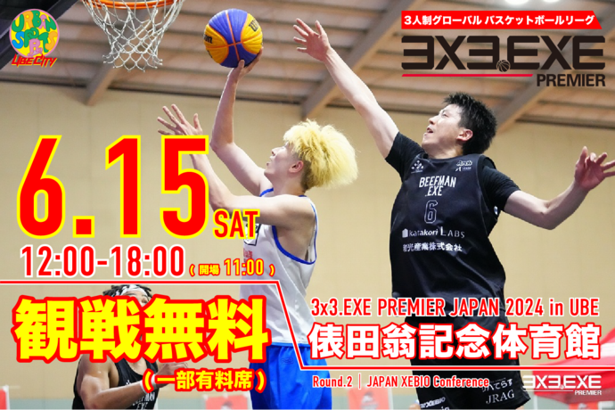 このたび、世界初の3人制バスケットボールリーグとして2014年に誕生した3×3.EXE PREMIERリーグを、令和4年度、5年度に引き続き招致しました。6月15日に、総勢12チームによる熱戦をぜひご覧ください!