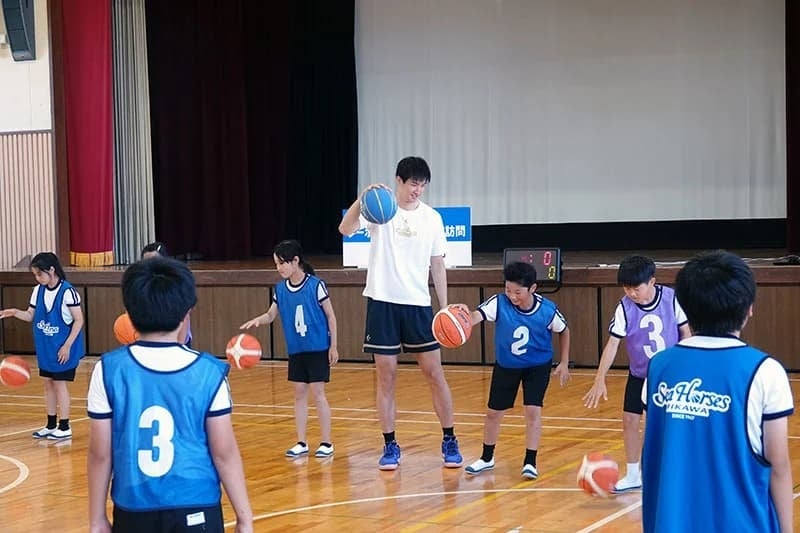その後は体育の授業にも参加し、児童の皆さんとバスケットボールを楽しみました。
