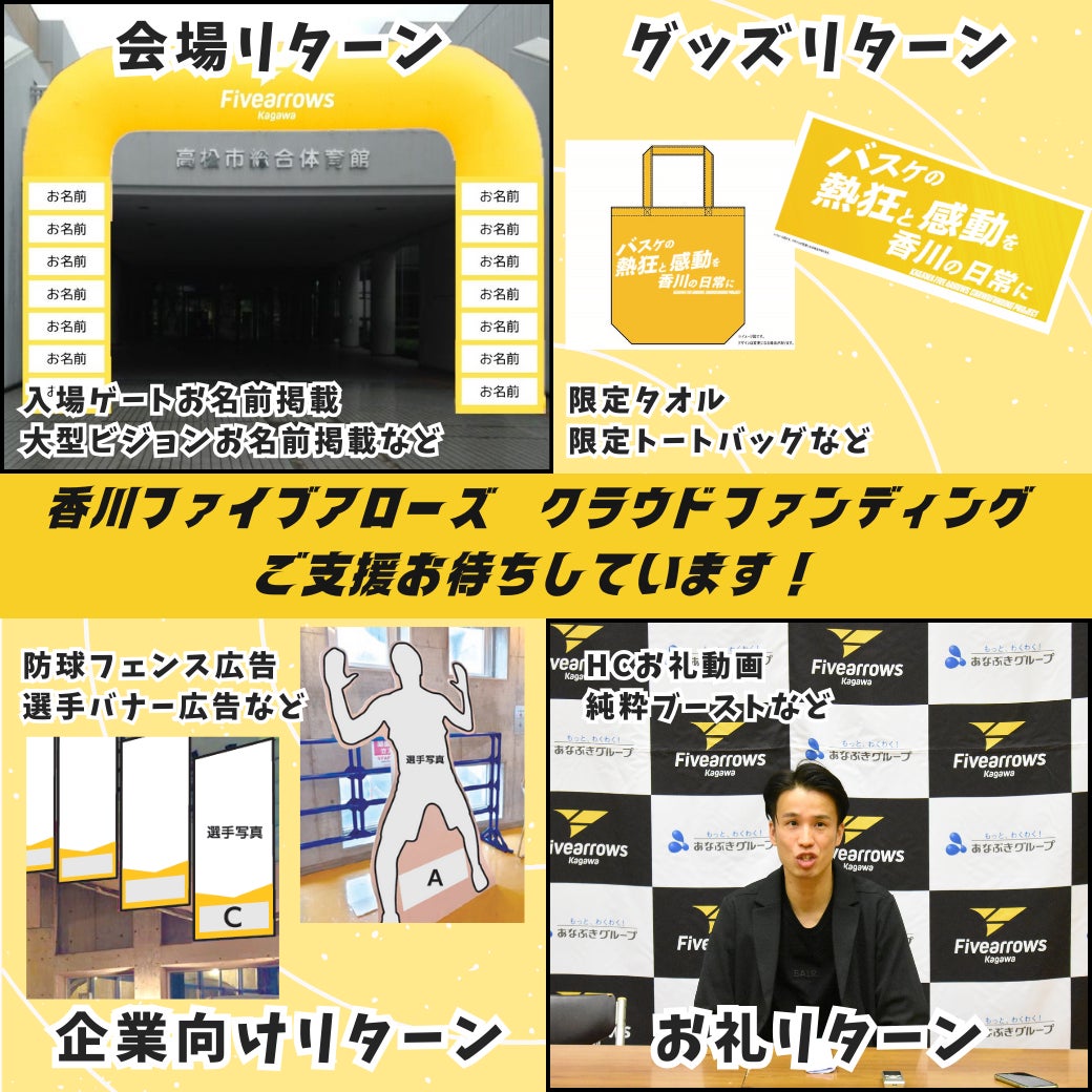クラブとして飛躍の一年となった2023-24シーズン。この種火を消さないために、香川ファイブアローズを香川県の文化として定着させるために、クラウドファンディングを立ち上げることが決定いたしました。