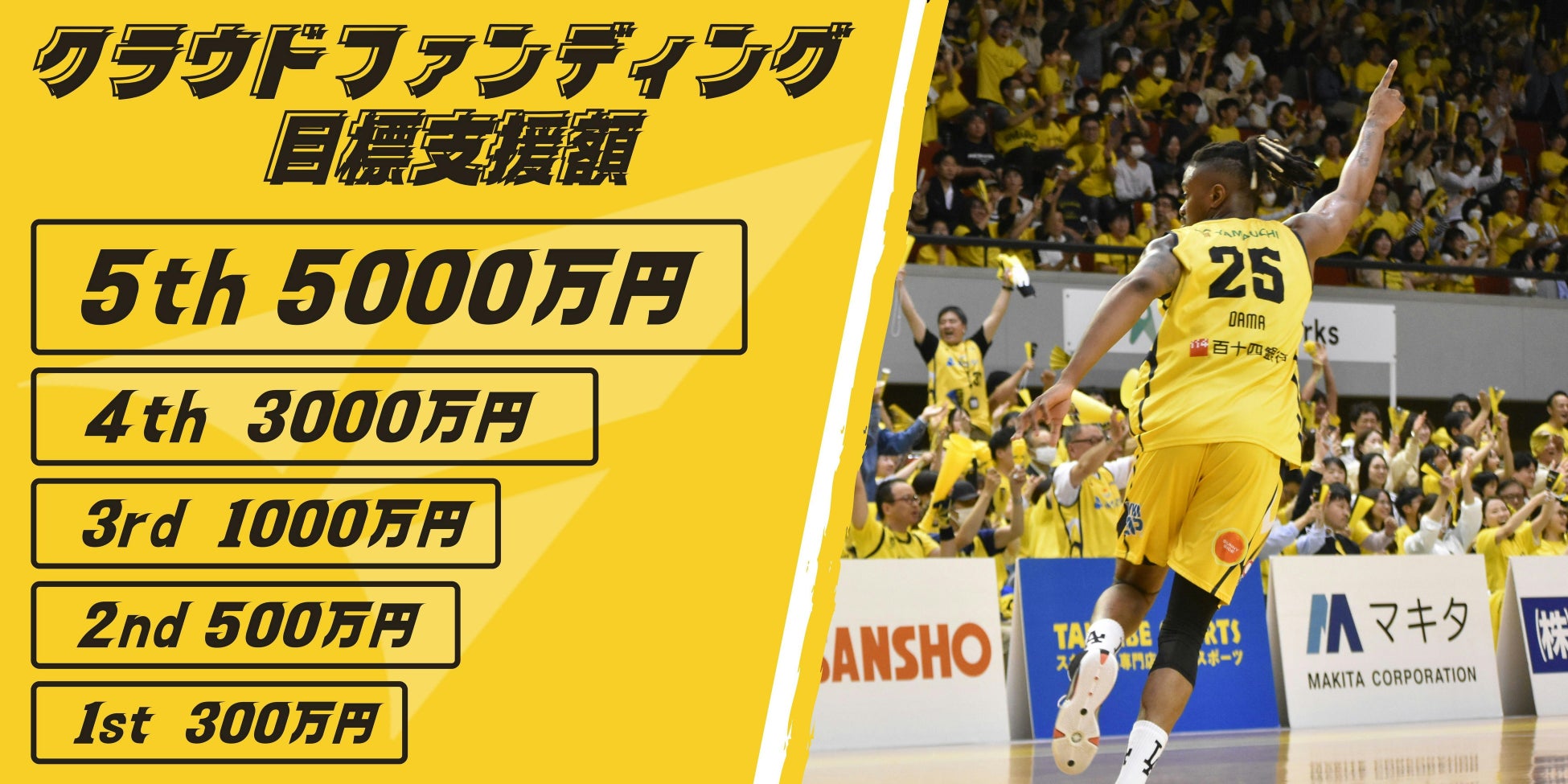 2024-25シーズンからの3シーズンにおいて、B3優勝、B2優勝、B.ONE優勝に挑戦し続けるクラブを創り、香川県における過去最高のプロスポーツの盛り上がりを生み出すための、チーム強化の資金をご支援いただくことがこのプロジェクトの目的となります。香川ファイブアローズを支えてくださる皆さま、香川県民の皆さまが誇れるクラブとなる強い決意を持ち、進めてまいります。