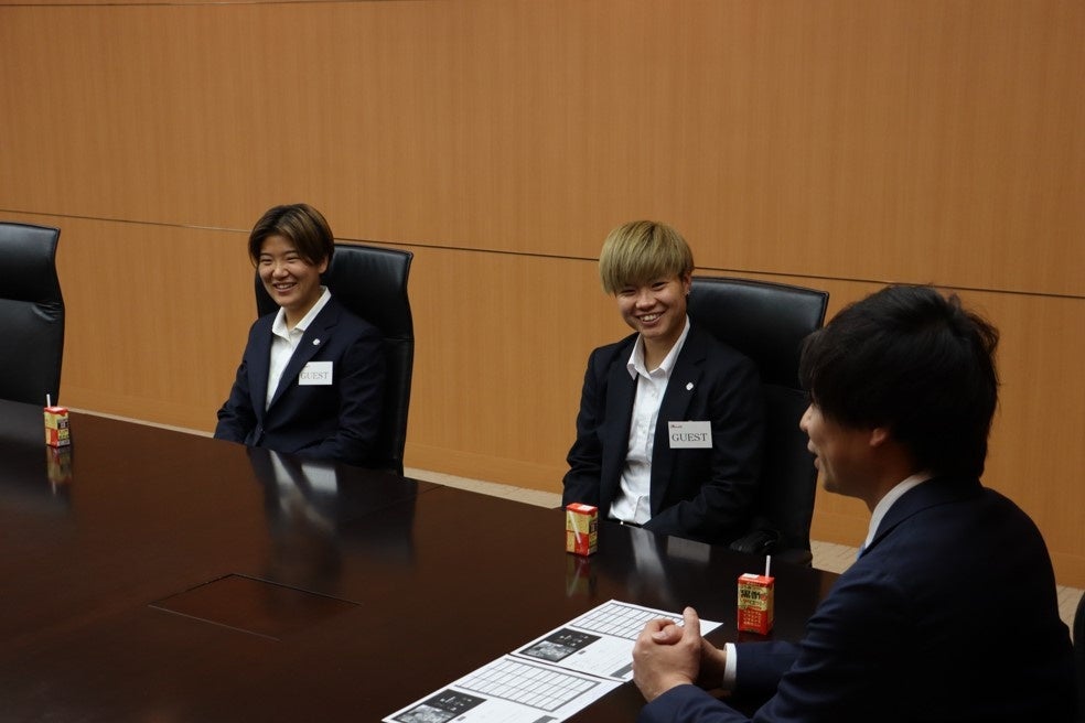 プロリーグ参入後初めてのシーズンを終え、森中選手、矢形選手が今シーズンを「ここぞ!という場面でシュートを決めることができず、課題が多かったシーズンでした。」と振り返り、来シーズンに向けて「メンタル面・技術面を鍛え、来シーズンは今シーズンと違った姿を見せ、チーム一丸となって戦い優勝を目指します。」と意気込みを熱く語りました。
