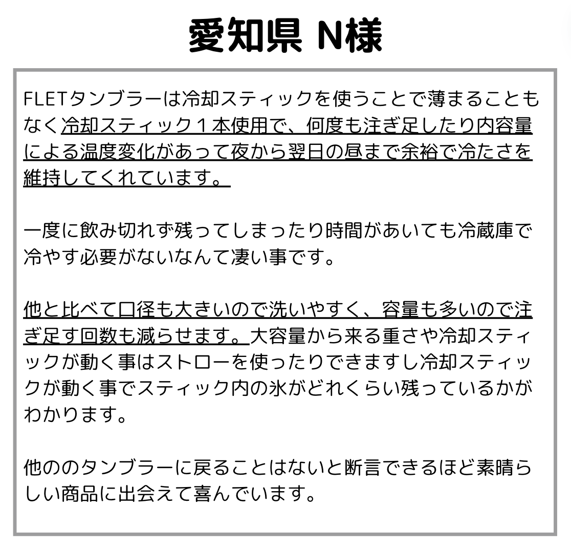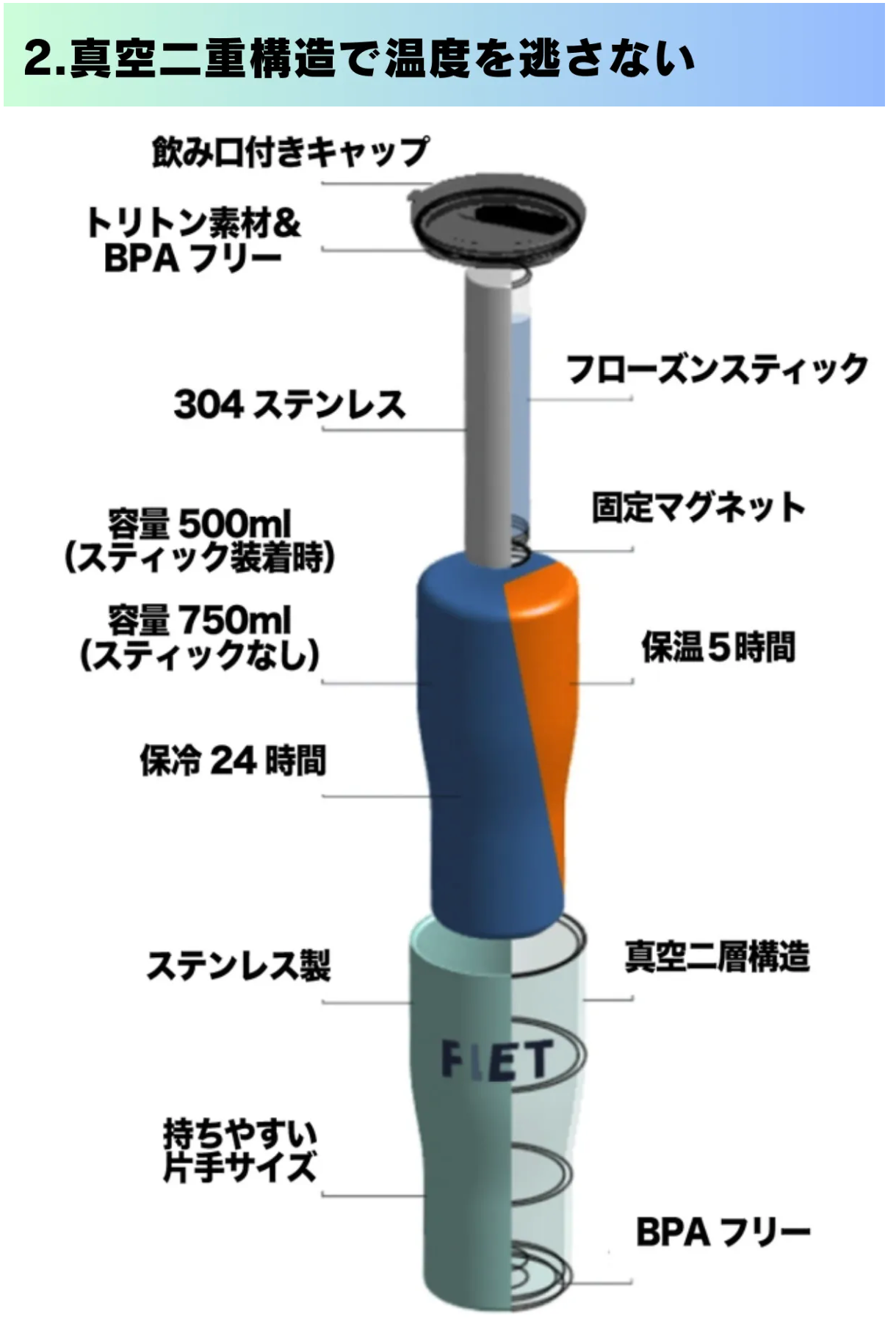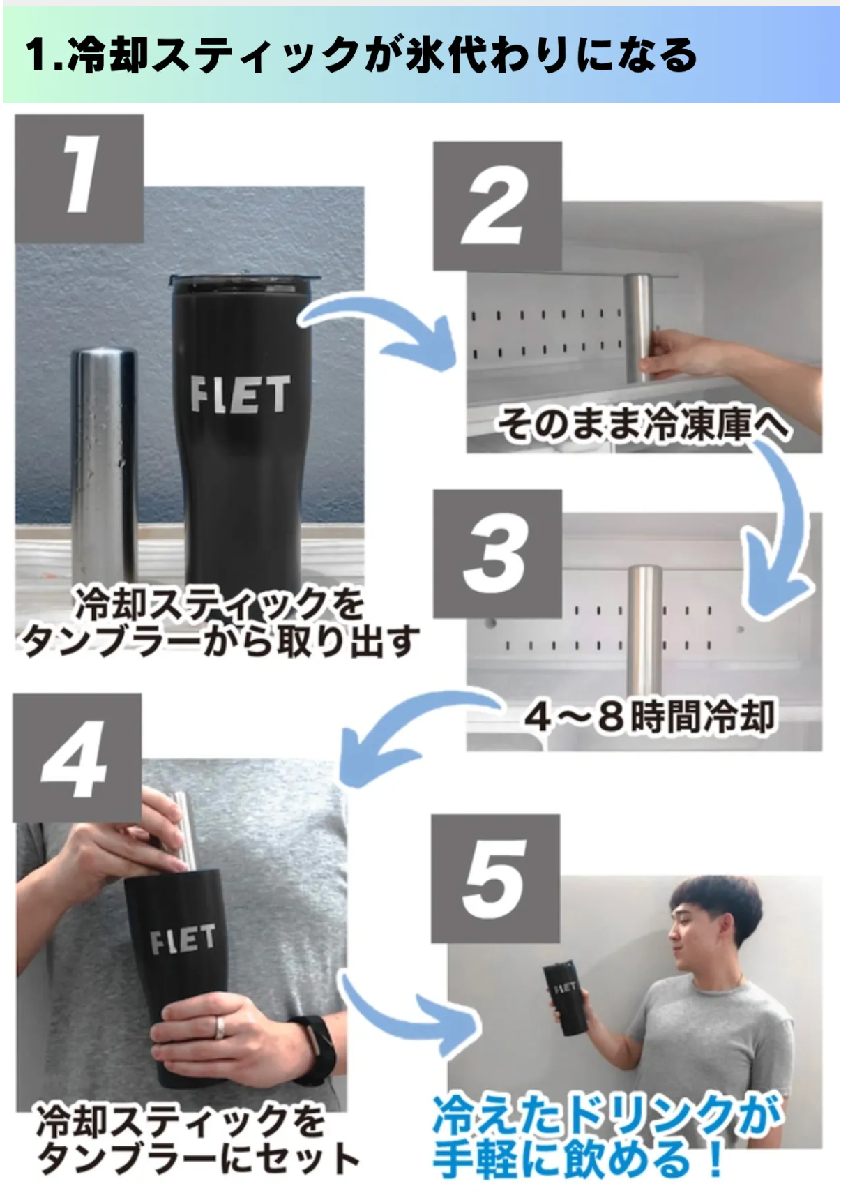 →FLETタンブラー解決策:【冷却スティック】で24時間冷却が可能 -