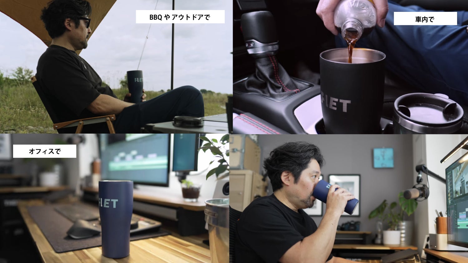 冷却スティックで冷たさが24時間続く「FLETタンブラー」。氷を使わないから薄まらない。キャンプ、アウトドアに最強のタンブラー。HOT利用もできるので1年中利用可能