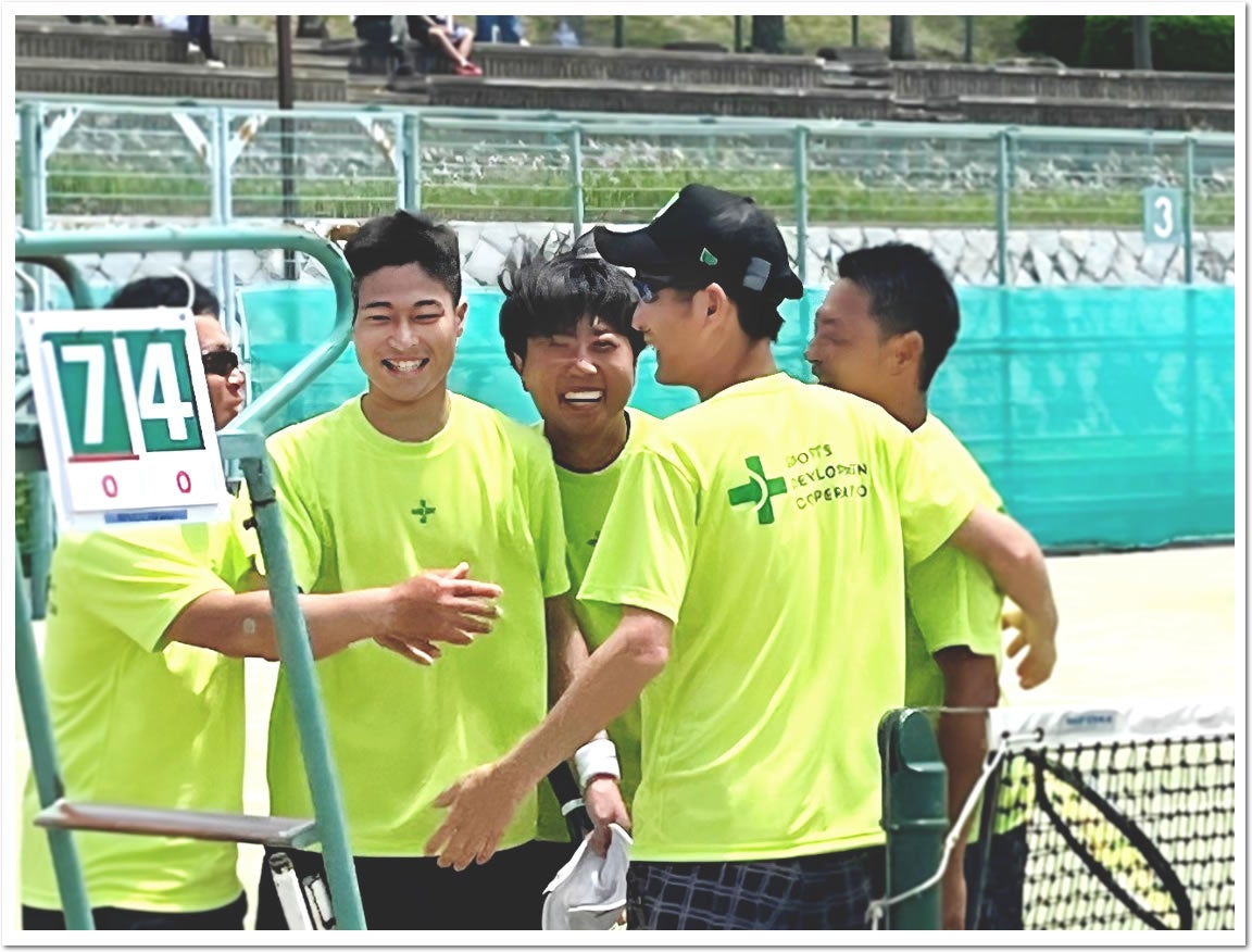 決勝ダブルス1は高橋のサーブと水品の巧みなショットで最後まで食いつくも、歴戦の相手にタイブレークを制され、惜しくも敗戦。