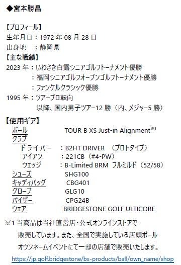 今シーズン1勝目をあげることができ、とてもうれしいです。いつも応援してくださっている方々、支えてくださっている方々に深く感謝致します。また、今回使用したTOUR B XSボールは、アプローチのフィーリングが抜群によく、3日間ノーボギーで通算21アンダーという大会レコードをマークし優勝につなげることができました。