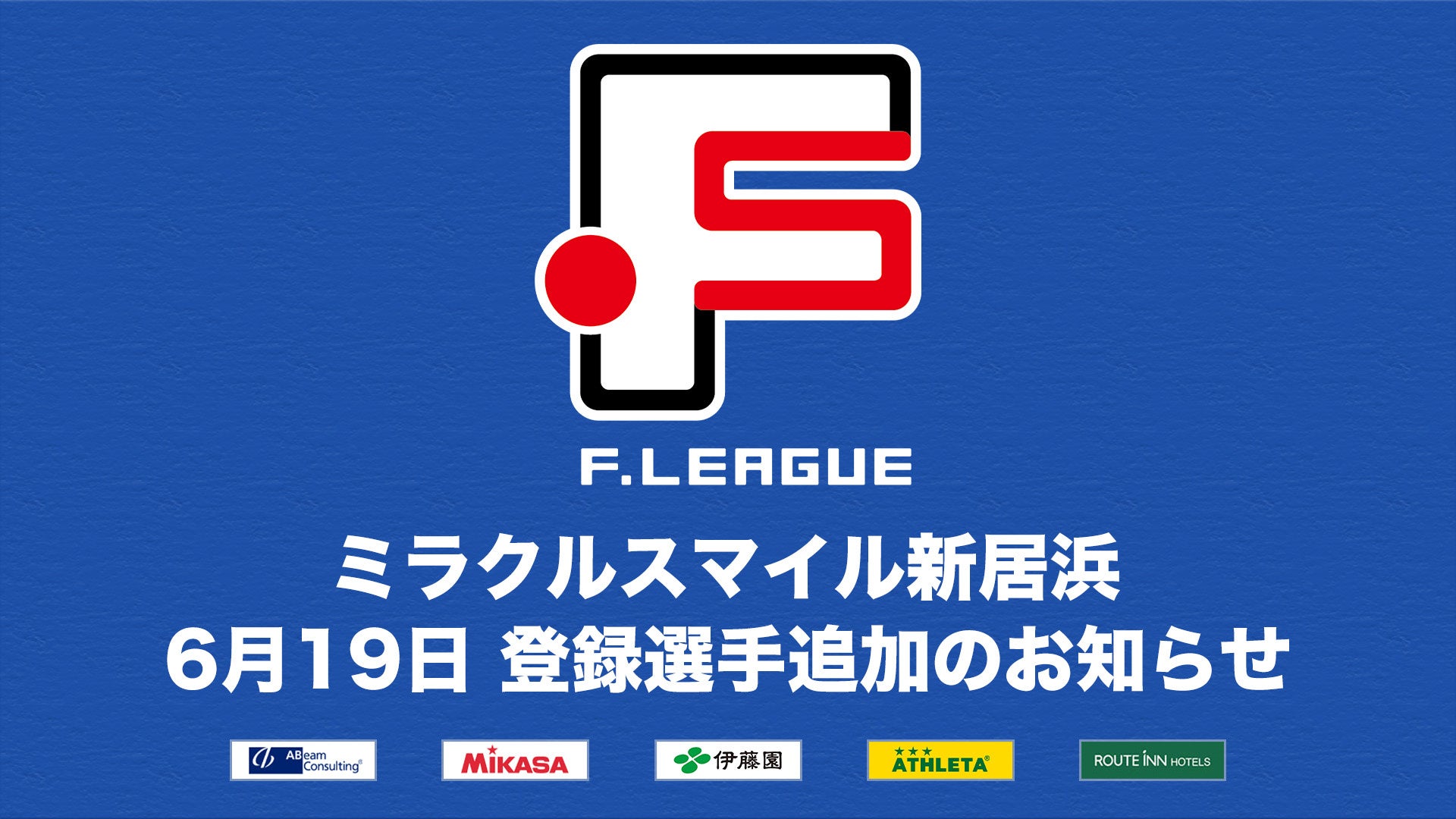 6月19日、Fリーグ2024-2025 ディビジョン2において、ミラクルスマイル新居浜の登録選手が追加されましたのでお知らせいたします。
