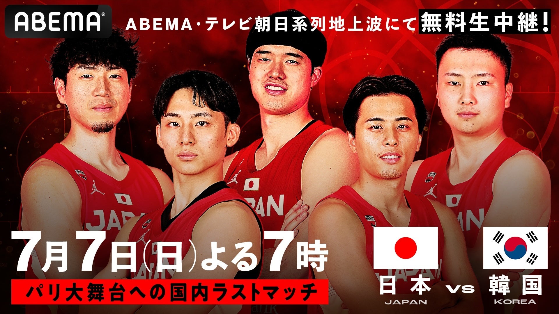 このたび「ABEMA」にて無料生中継が決定した7月7日(日)に行われるバスケットボール男子日本代表国際強化試合、日本対韓国は、7月26日(金)から始まる「パリ2024オリンピック」に向けた国内最後の強化試合となり、「ABEMA」としては初のバスケットボール日本代表戦の中継となります。中継ではABEMA独自のカメラを設置し「日本代表ベンチカメラ」「注目選手追っかけカメラ」などマルチアングルにて中継をより楽しむことができます。昨年行われた「FIBAバスケットボールワールドカップ2023」で旋風をおこし、1976年のモントリオール大会以来、48年ぶりに自力でのオリンピック出場を決めた男子日本代表の勇姿をぜひ「ABEMA」でご覧ください。