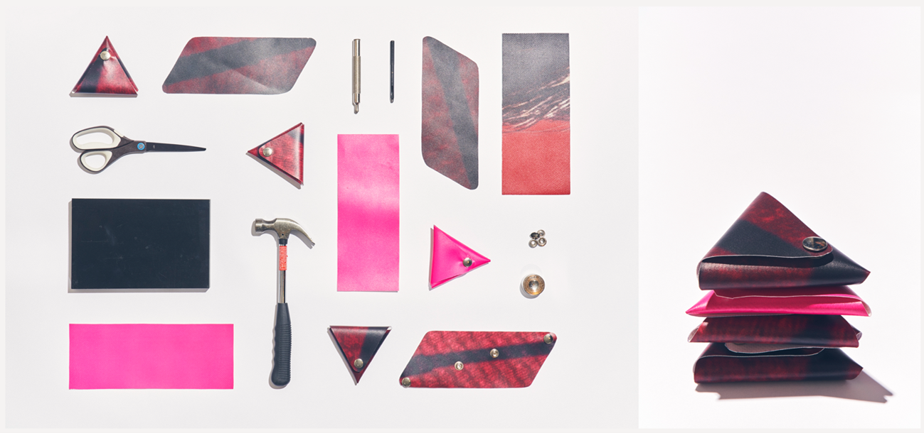 アップサイクルグッズの制作の過程で余った端材を活用し、世界に一つだけの三角コインケースの制作体験