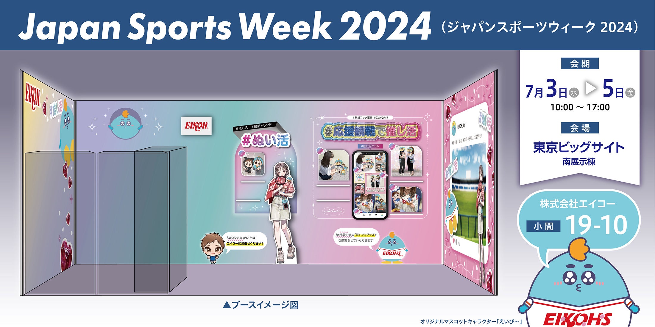 株式会社エイコー(本社:東京都墨田区)は、2024年7月3日(水)〜7月5日(金)に東京ビッグサイトにて開催されるスポーツチーム・アスリート向けの総合展示会「Japan Sports Week 2024」内の『スポーツビジネス産業展』に出展いたします。